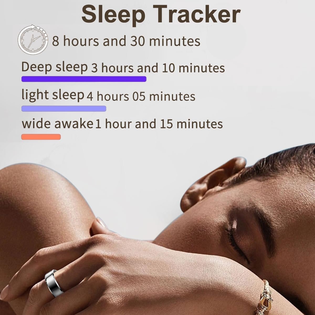 【Smart Sleep Ring】 Built-in sleep tracker to monitor last night’s sleep duration, light sleep time, deep sleep time, and awake time. Not only that, but you can also check your sleep status for the past week or even a month to fully understand your sleep habits and quality. Based on a comprehensive sleep quality analysis to help you develop good sleep habits.