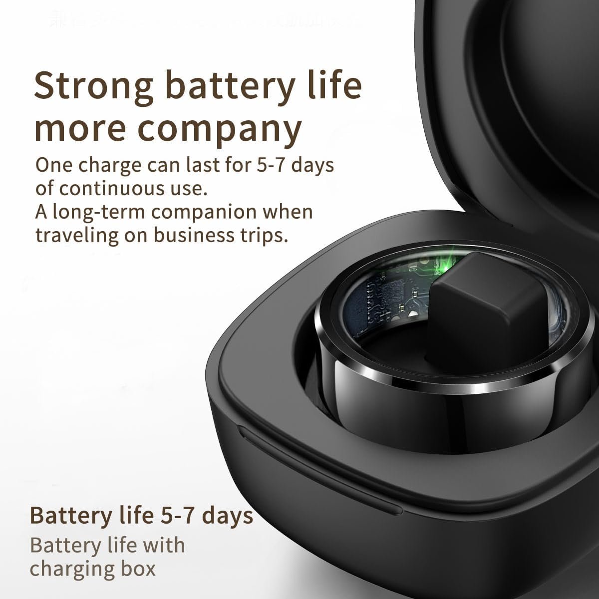 【Small Charging Case & Easy to Carry】 This ring is equipped with a small charging case, just put the ring in the charging case, you can charge it anytime and anywhere, no need to worry about running out of power. This small charging case is also very portable. It’s small enough to fit easily in your pocket and doesn’t take up too much space. Moreover, it is also very delicate in design and feels good in the hand.
