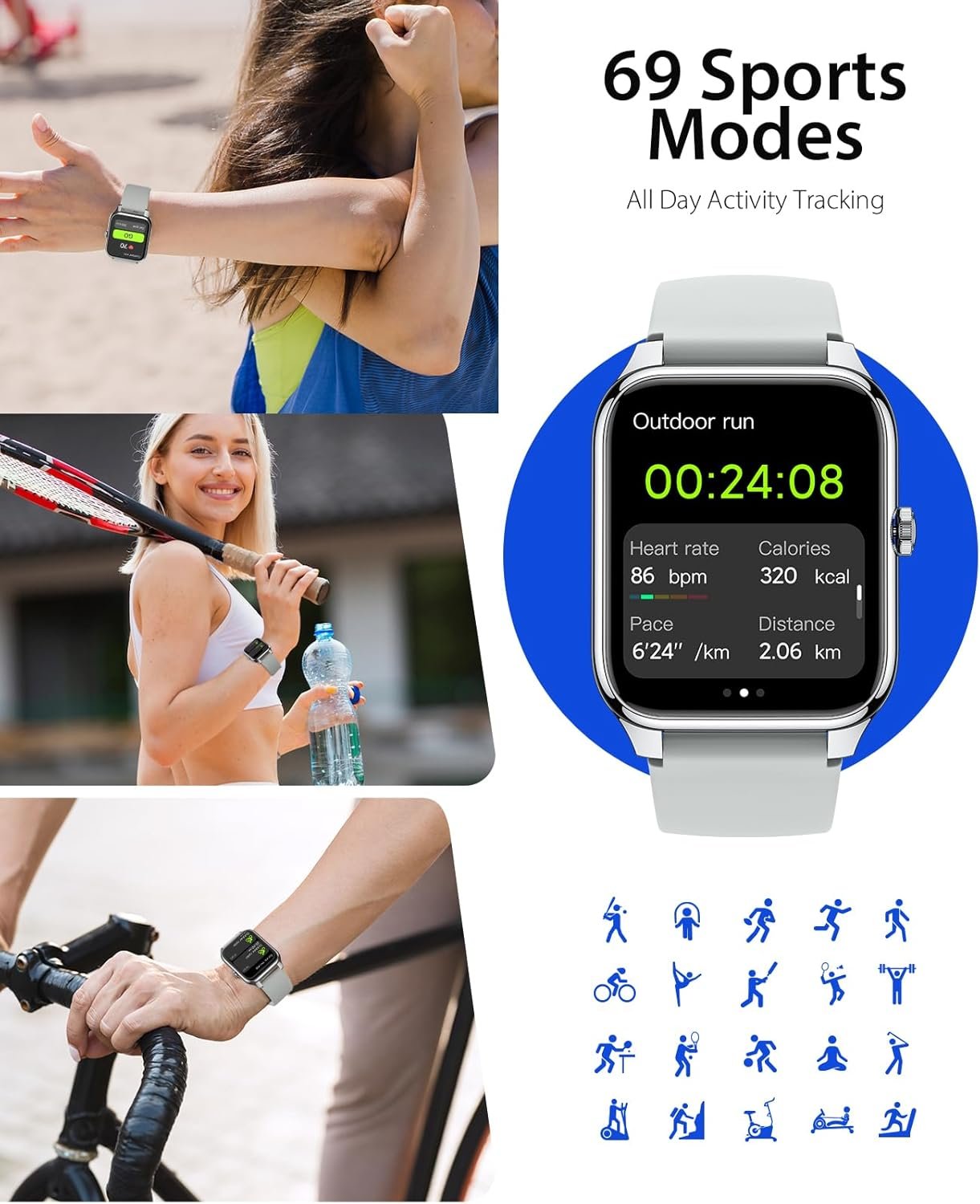 ACTIVITY FITNESS TRACKERS — Smart watches comes with 69 sport modes including walking, running, climbing, cycling, basketball, etc. It uses smart exercise data analysis to track your exercise time, heart rate, calories, steps, distance and speed in real time. Record data while exercising to get a clearer picture of your fitness trajectory. You can also view the workout data in the APP for any time.