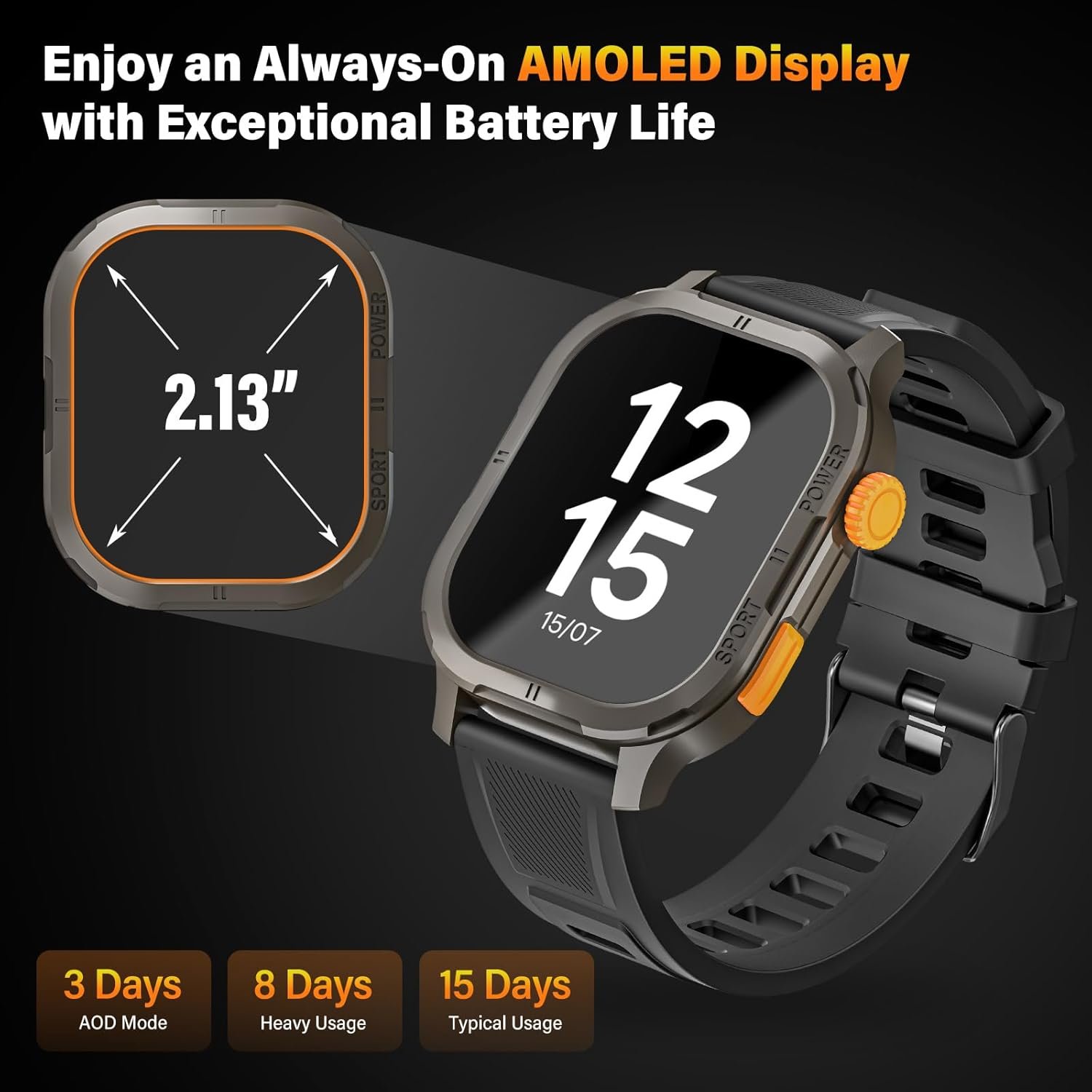 Stunning Display, Unmatched Durability-Experience the brilliance of our smartwatch with an AMOLED display that allows for an always-on screen to showcase the time, so you can check it at a glance without tapping the screen. Despite the always-on display, the watch boasts impressive battery life, ensuring long-lasting performance. Encased in a sleek and durable metal body, it withstands daily wear and tear. Whether you’re in the gym or out in nature, our smartwatch combines style and functionality, making it the perfect companion for your active lifestyle