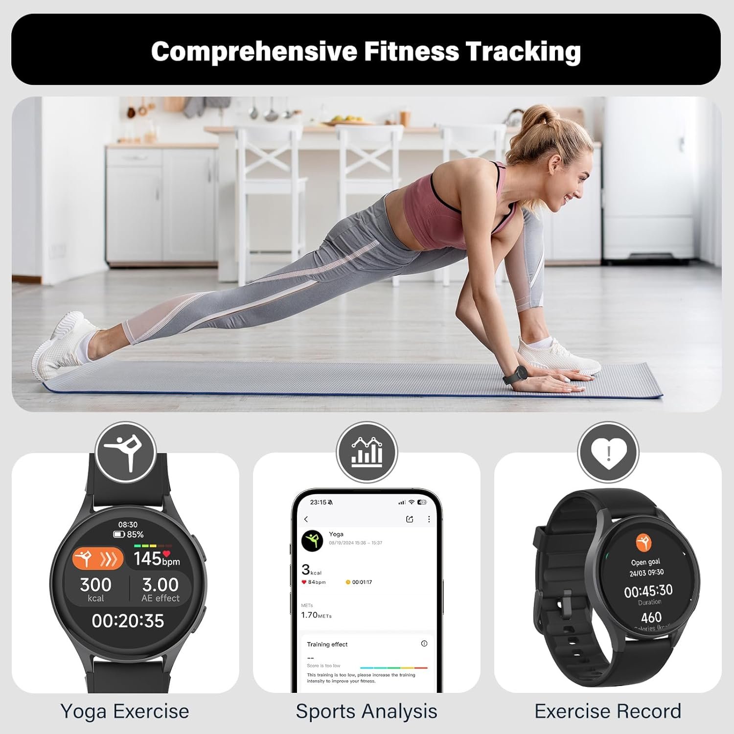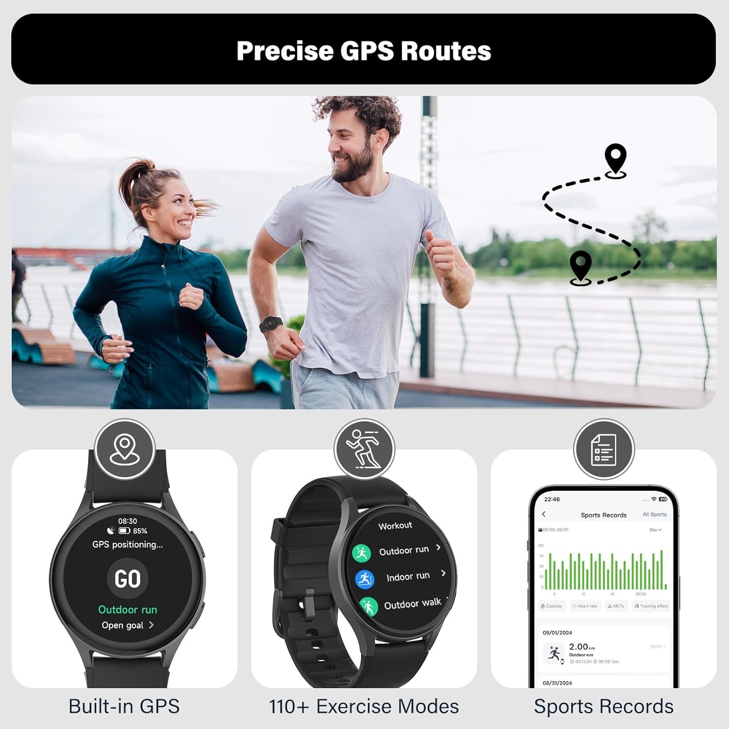 Comprehensive Sports Tracking: This smart watch offers extensive sports tracking across various activities, including outdoor running, hiking, swimming, and indoor exercises like yoga, Pilates, and HIIT. It monitors key data such as distance, intensity levels, VO2 Max, recovery time, and aerobic training effect. With built-in GPS, a compass, and an altimeter barometer, it ensures accurate tracking and guidance, making it indispensable for outdoor enthusiasts and fitness lovers