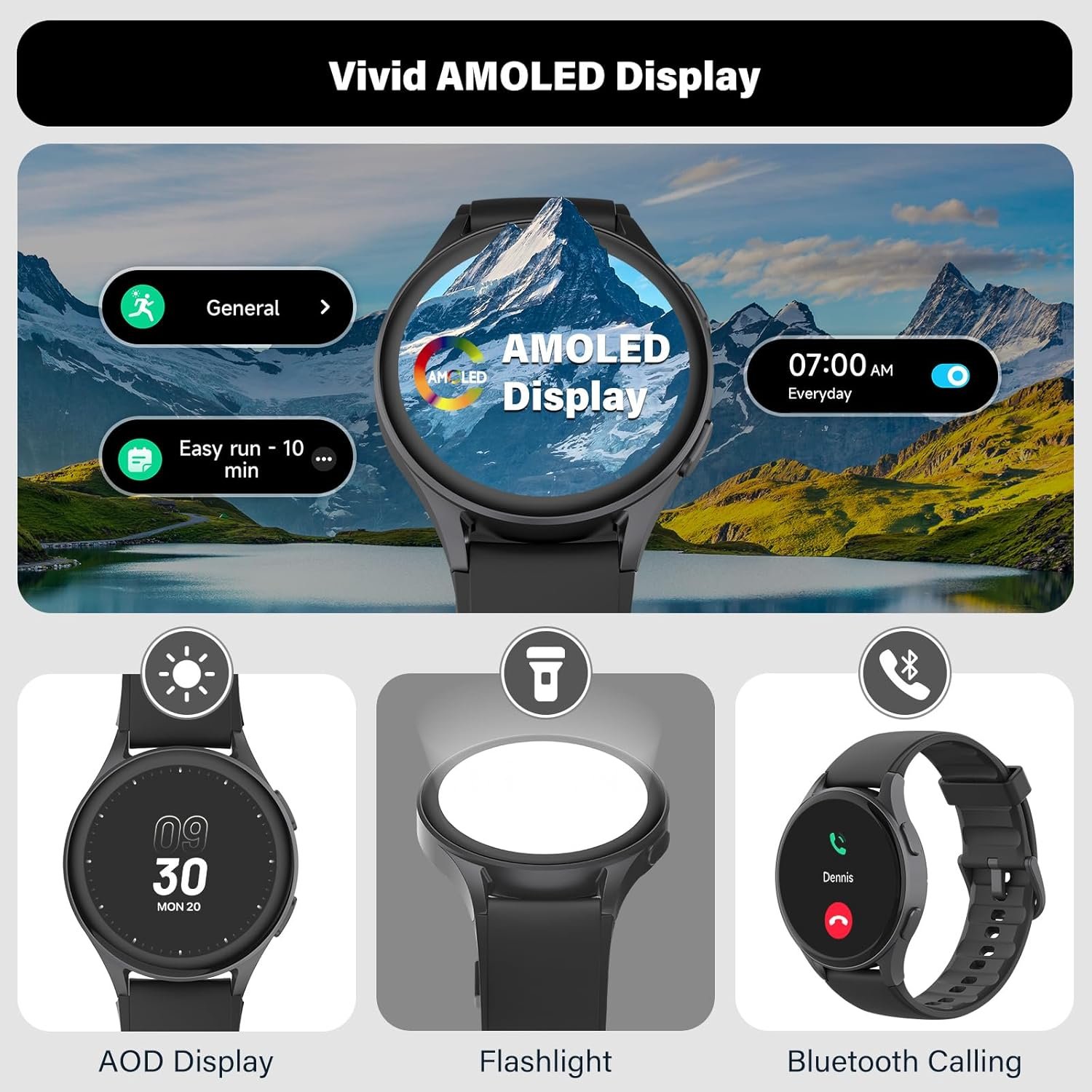 Vibrant & Customizable AMOLED Display: Enjoy a visually stunning 1.43” AMOLED screen that offers bright, clear visuals even under direct sunlight. The Always-On Display (AOD) mode keeps essential information readily accessible without draining the battery. Personalize your experience with customizable watch faces, allowing you to design a look that reflects your style and personality, whether it’s for work, fitness, or leisure