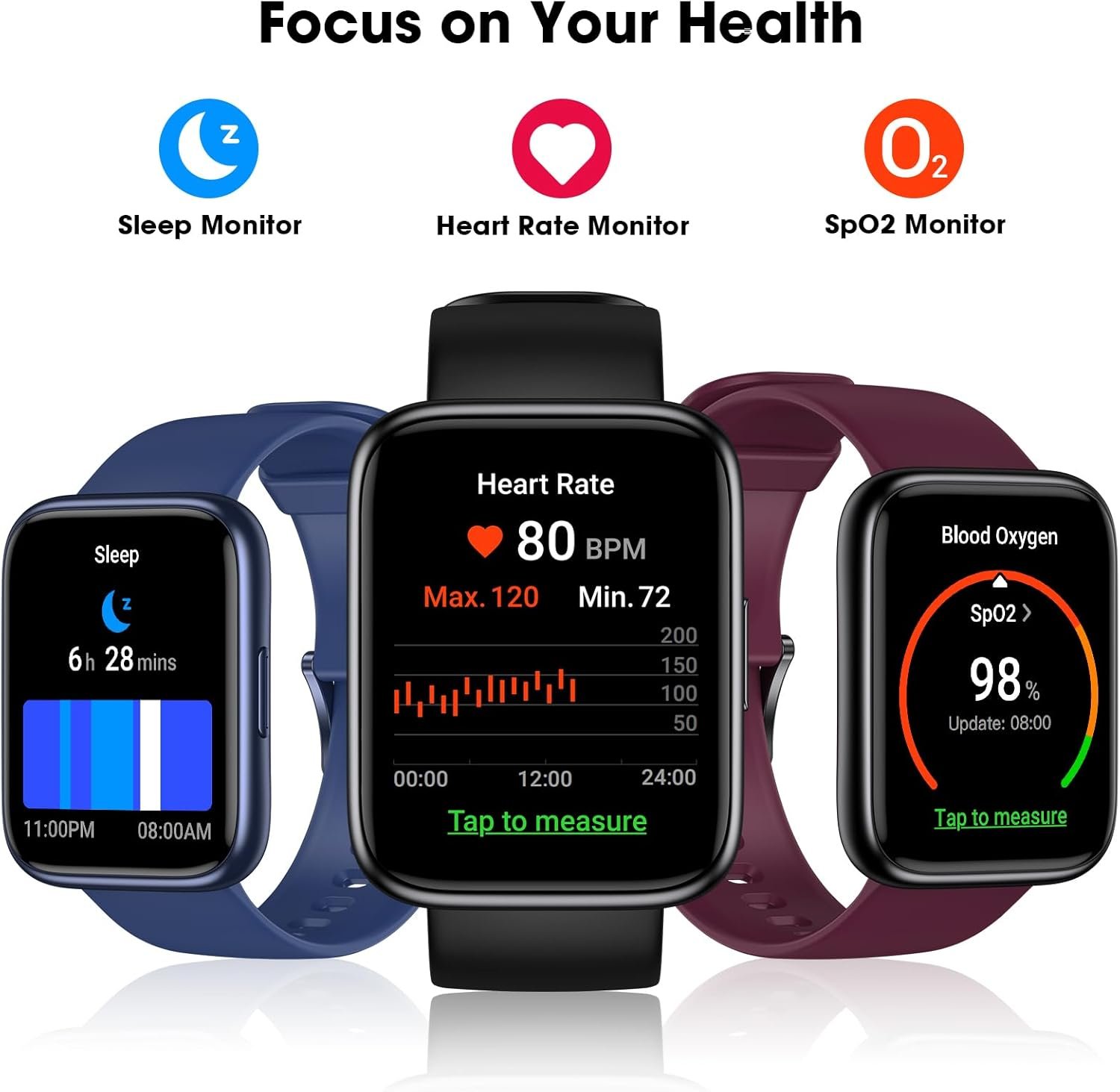 Large Clear Display & Customizable Watch Faces: This smartwatch features 1.7-inch display, high contrast and saturation offer clear and vivid visuals. The watch features over 100 cloud watch faces, you can set up exclusive watch dials through your photos album as well.