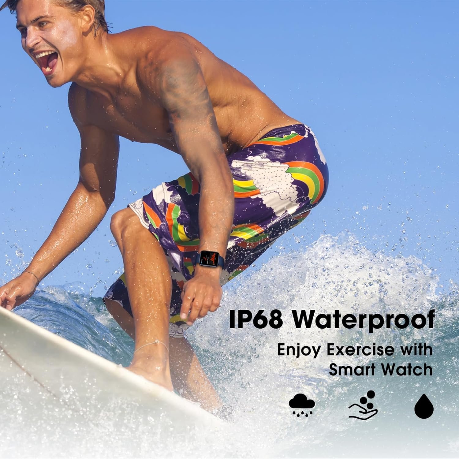 Waterproof Watches with Multi-Sport Modes: The fitness tracker tracks calories burned, steps taken, distance walked and activity time all day. And our watch features 14 sports modes suan as running, walking, yoga, ect. The smartwatches track your outdoor workout route as well if connected with your smartphone’s GPS. With IP68 waterproof rating, The sport watch can withstand sweat, hand washing, or rain day while exercise.