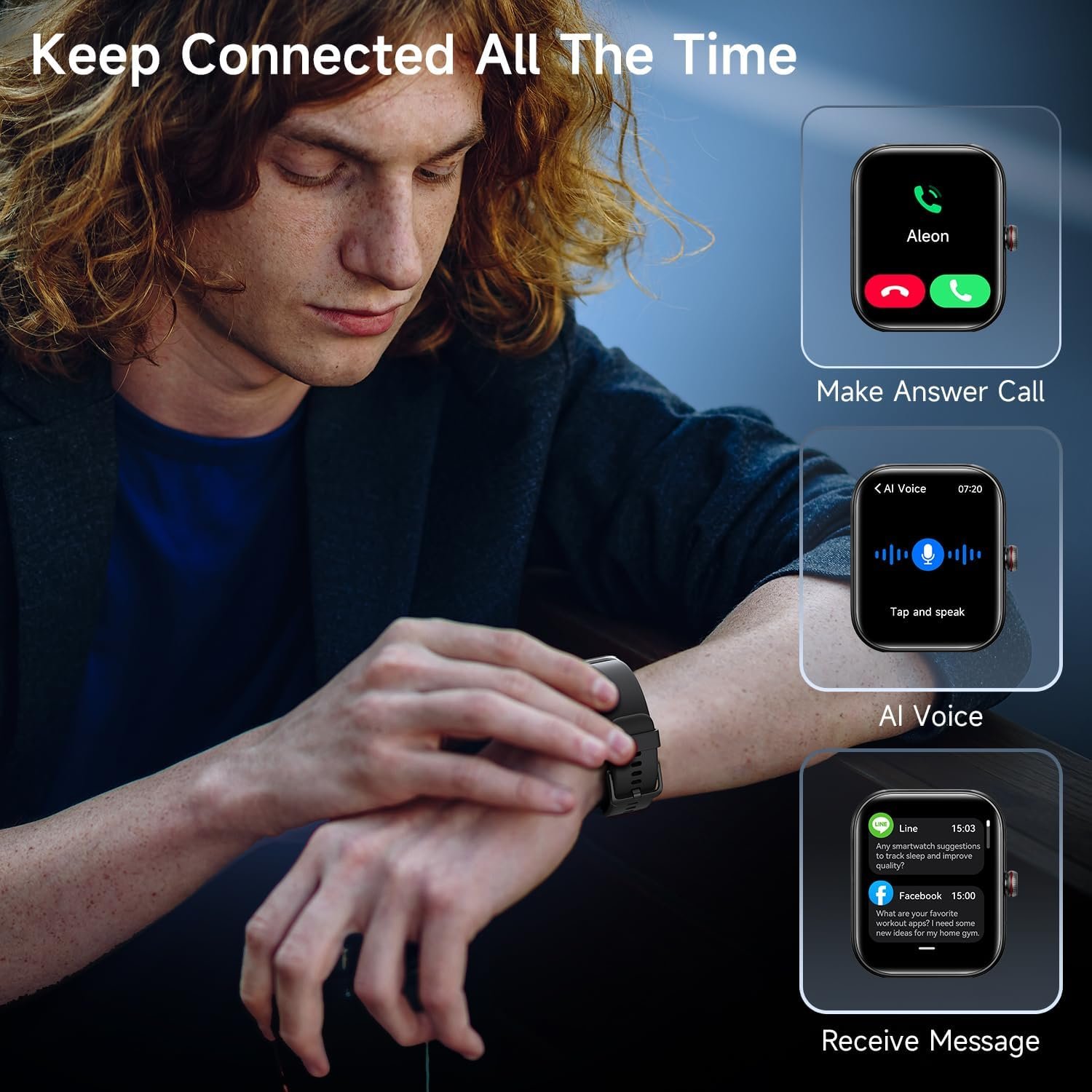 Make/Answer Calls & Receive Messages: Our android smartwatch features Bluetooth 5.3 connectivity. Built-in HiFi speaker for making or answering phone calls. This smart watch for android phones can also receive various social media notifications