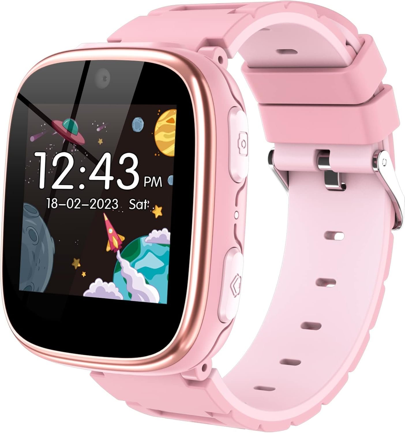 Smart Watch for Kids 4-12 Years Old with 15 Games Camera Alarm Video Music Player Pedometer Flashlight Birthday Gift for Boys Girls (Pink)