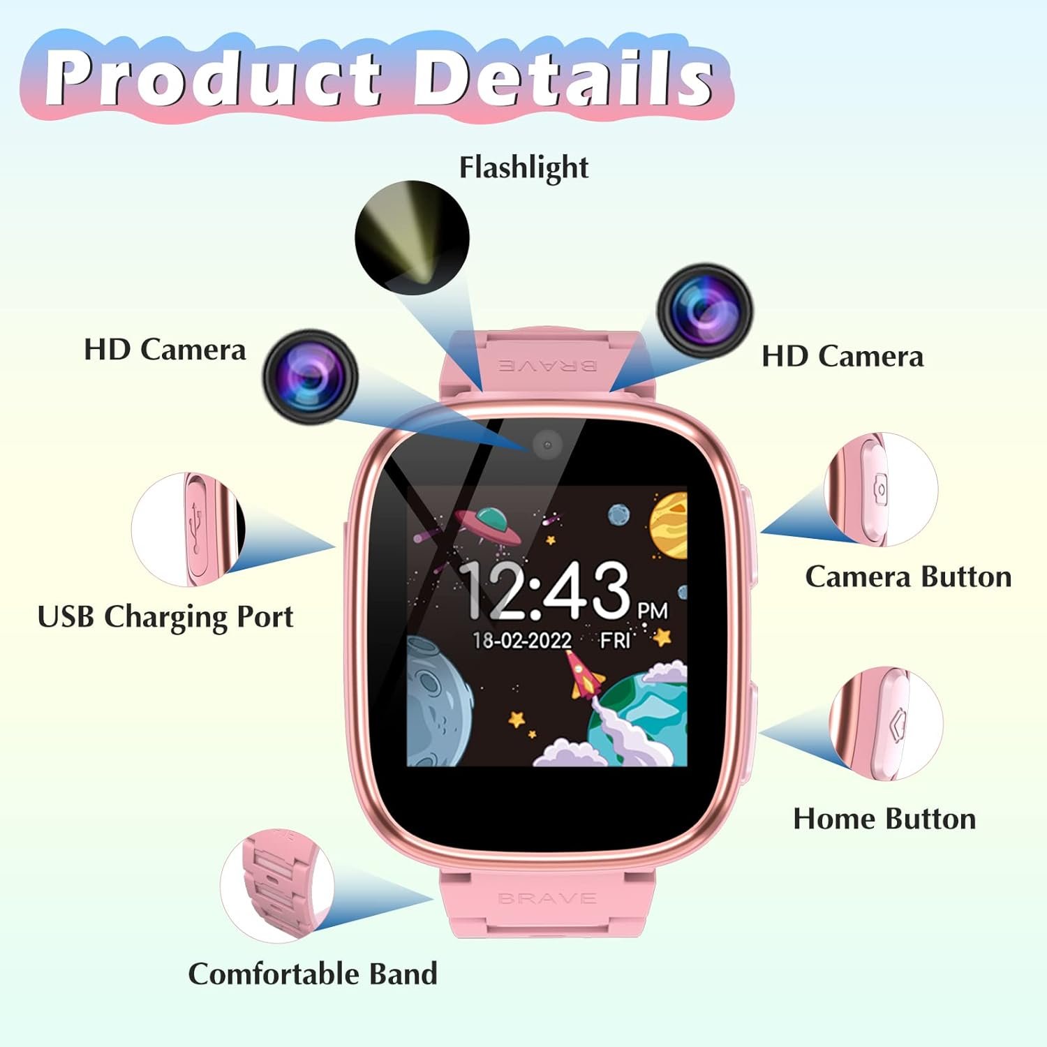 Newest Features Never Seen Before: This kids smart watch introduced Audiobook, Time Teacher, Sound Teacher, Habit, Camera Sticker, Parental Control, and still include cameras, games, alarm clocks, music,etc. that traditional watches have.
