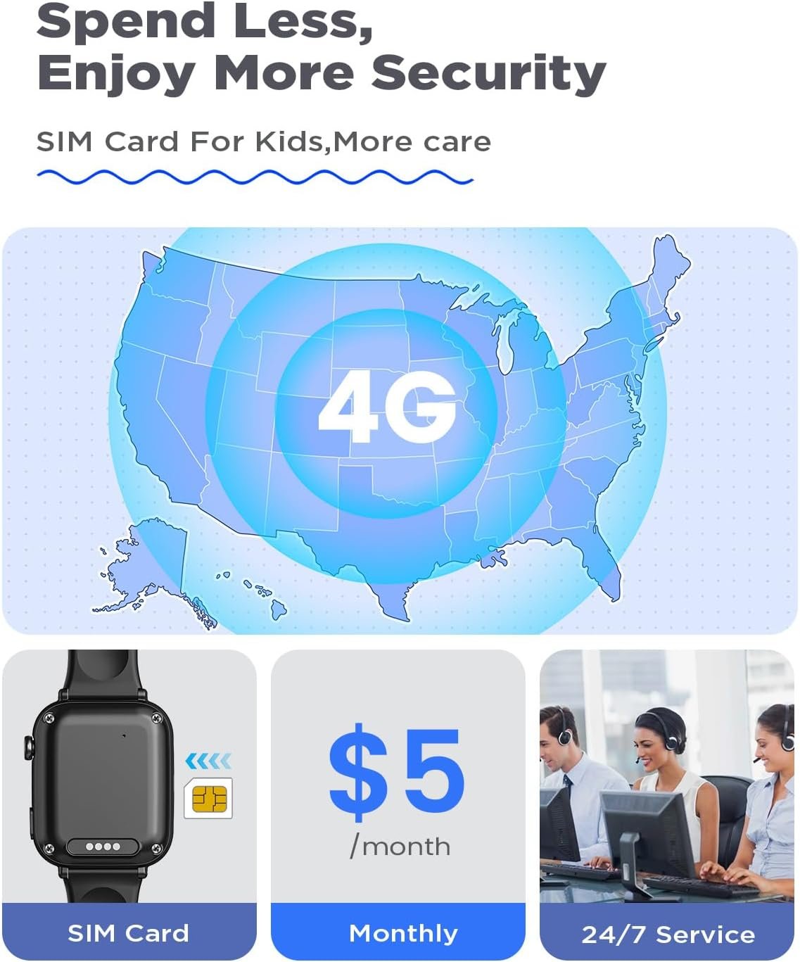 【Low Cost with High Signal Coverage】: With monthly fees beginning at just $5, you can select a flexible payment plan that suits your needs. Enjoy dependable signal reception across the entire U.S. thanks to the smart watch for kids advanced intelligent AI chip. This technology ensures that you stay connected no matter where you are, providing uninterrupted coverage and reliable performance
