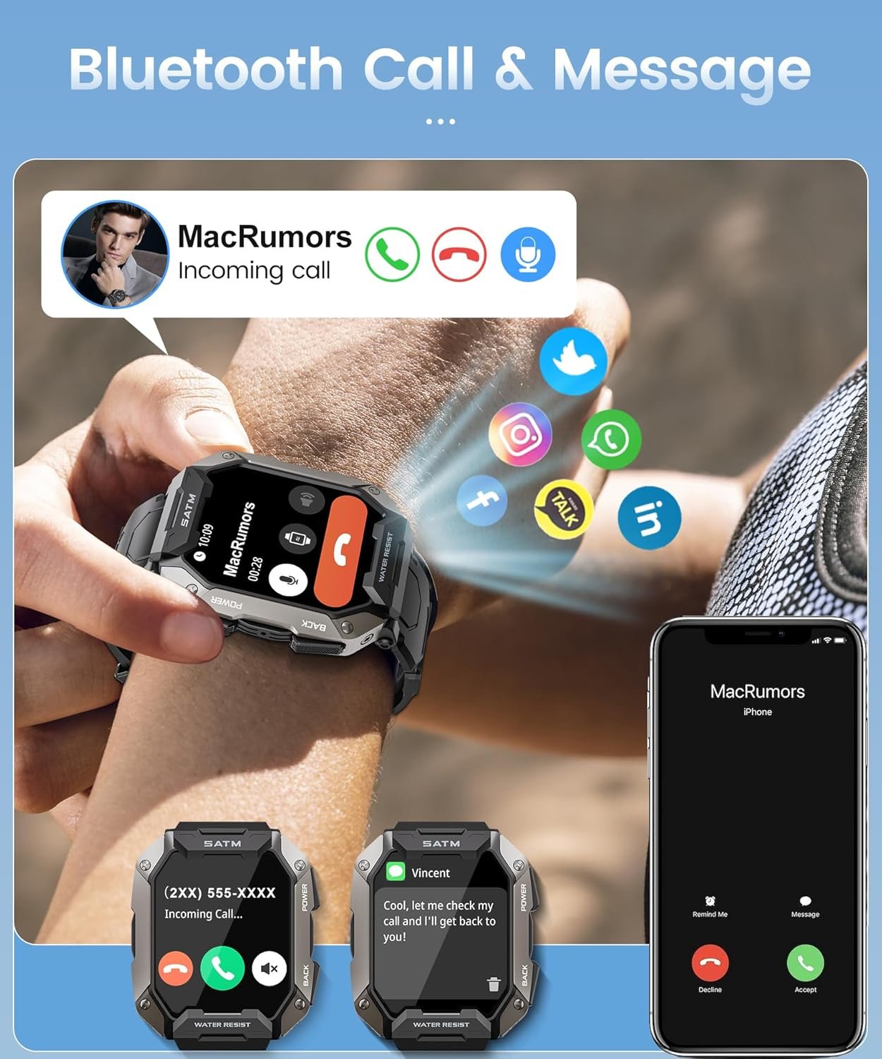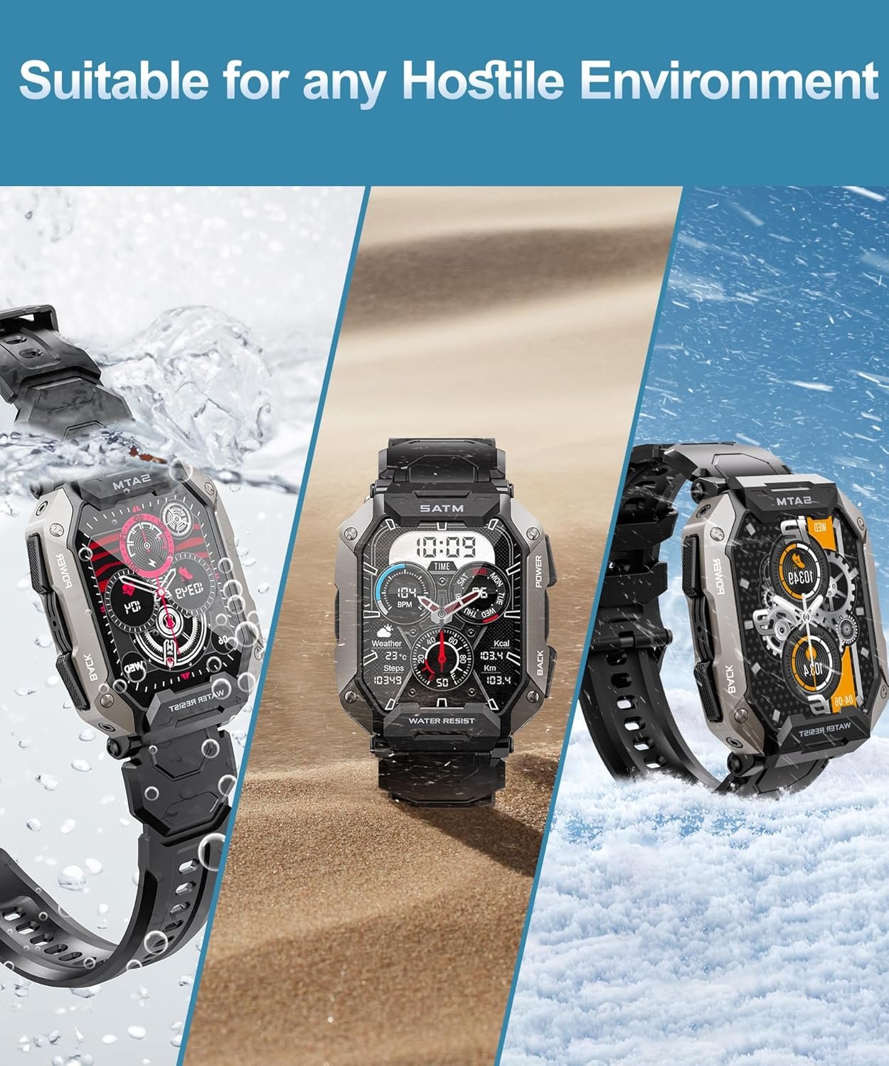 Compatibility and Extra-Long Battery: The smart watch is compatible with most iOS and Android for broad compatibility. This men smart sport watches specific 580 mAh ultra long life battery,while also supporting fast magnetic charging technology, ensuring quick and efficient charging, for extended outdoor adventures or busy days