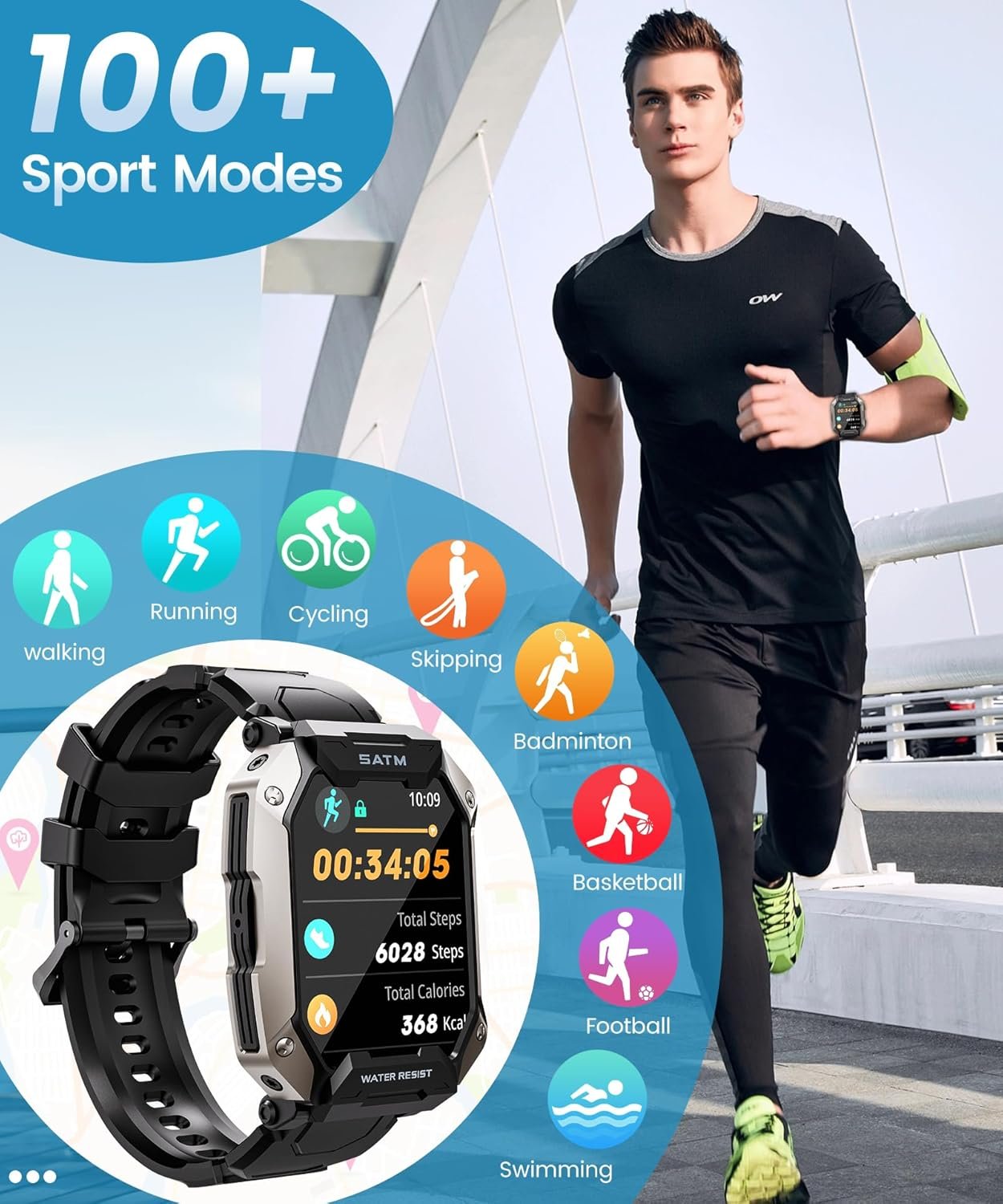 Higher Quality & IP68 Waterproof: The Upgraded smart watch comes with 2.01” HD Display. And the special composite case makes this smartwatch scratchproof, dustproof and rugged, making it a reliable companion for indoor and outdoor adventures. This waterproof watch can be submerged in water up to 100 meters under static conditions