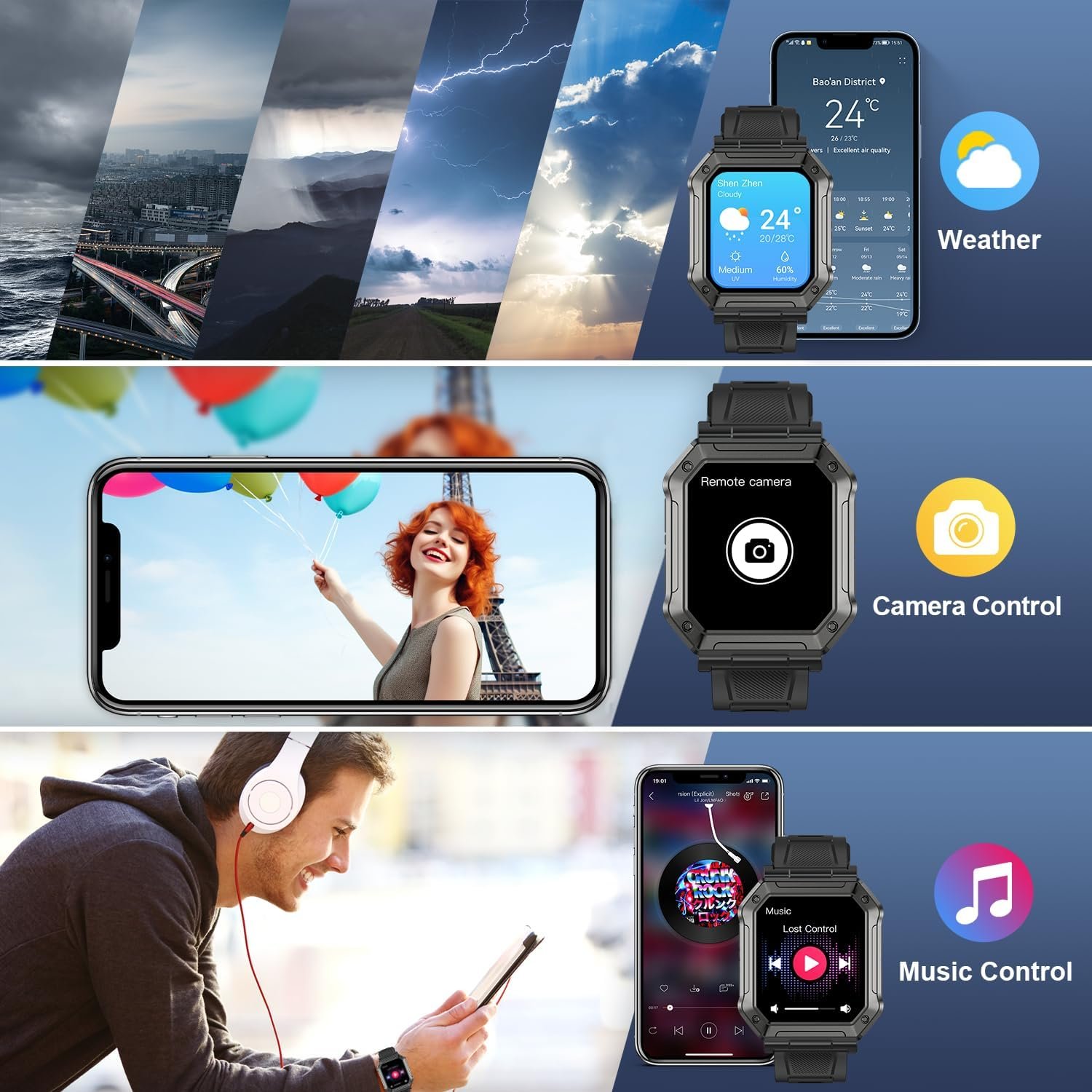 3. Music Playback and Control: You can carry music directly through the watch.
