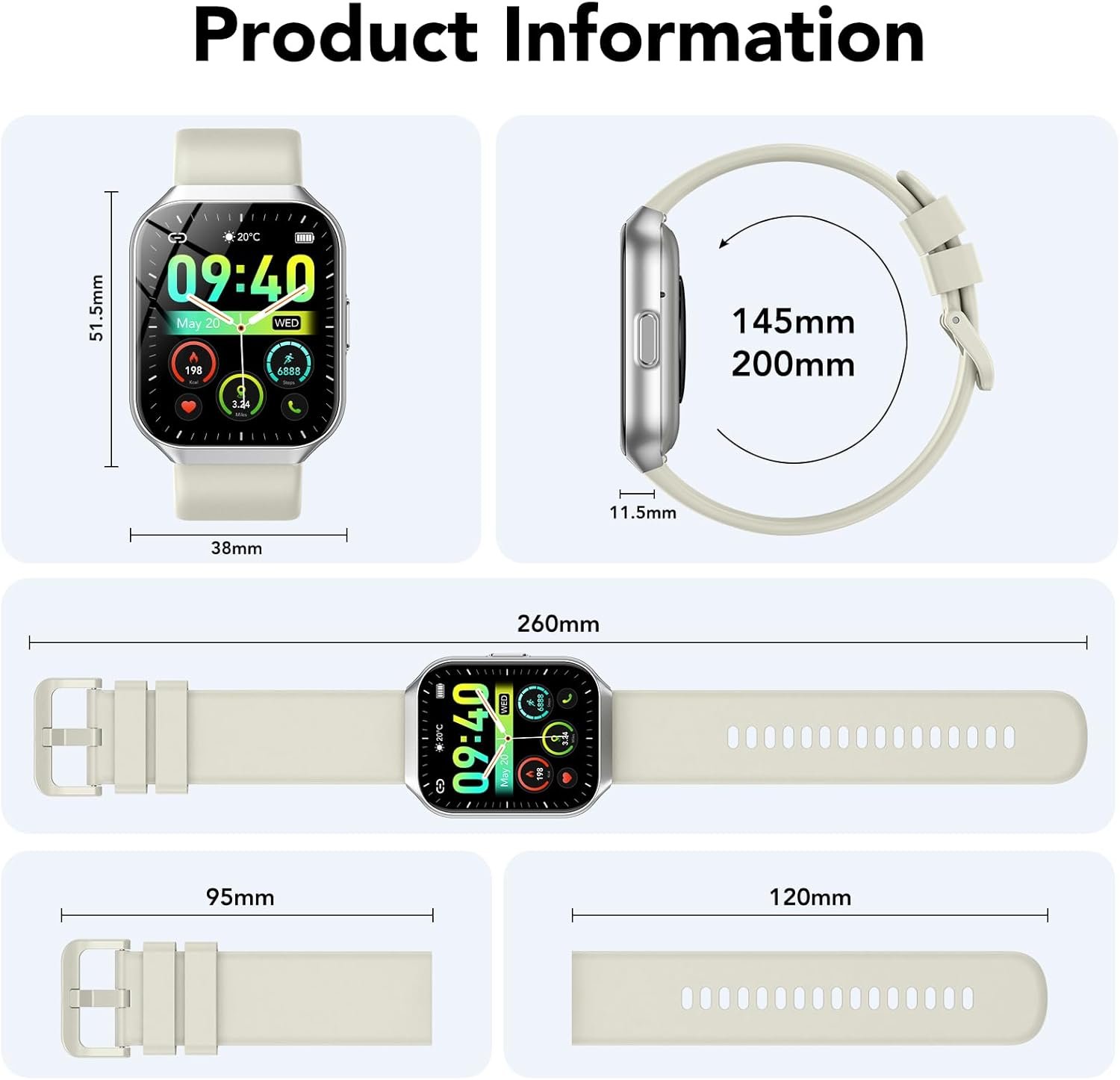 1.96” HD Touch Screen & 250+ DIY Watch Faces: P98 smart watch is equipped with a 1.96″ HD full touch color highest resolution ultra clear TFT screen, delivering highly responsive touch. With the companion GloryFit app, you can download more than 250 free personalised watch faces and set it as your desktop. In addition, you can also select your favorite photo like family, selfie, pets photo, landscape photo, your car as a wallpaper in your smart watch.