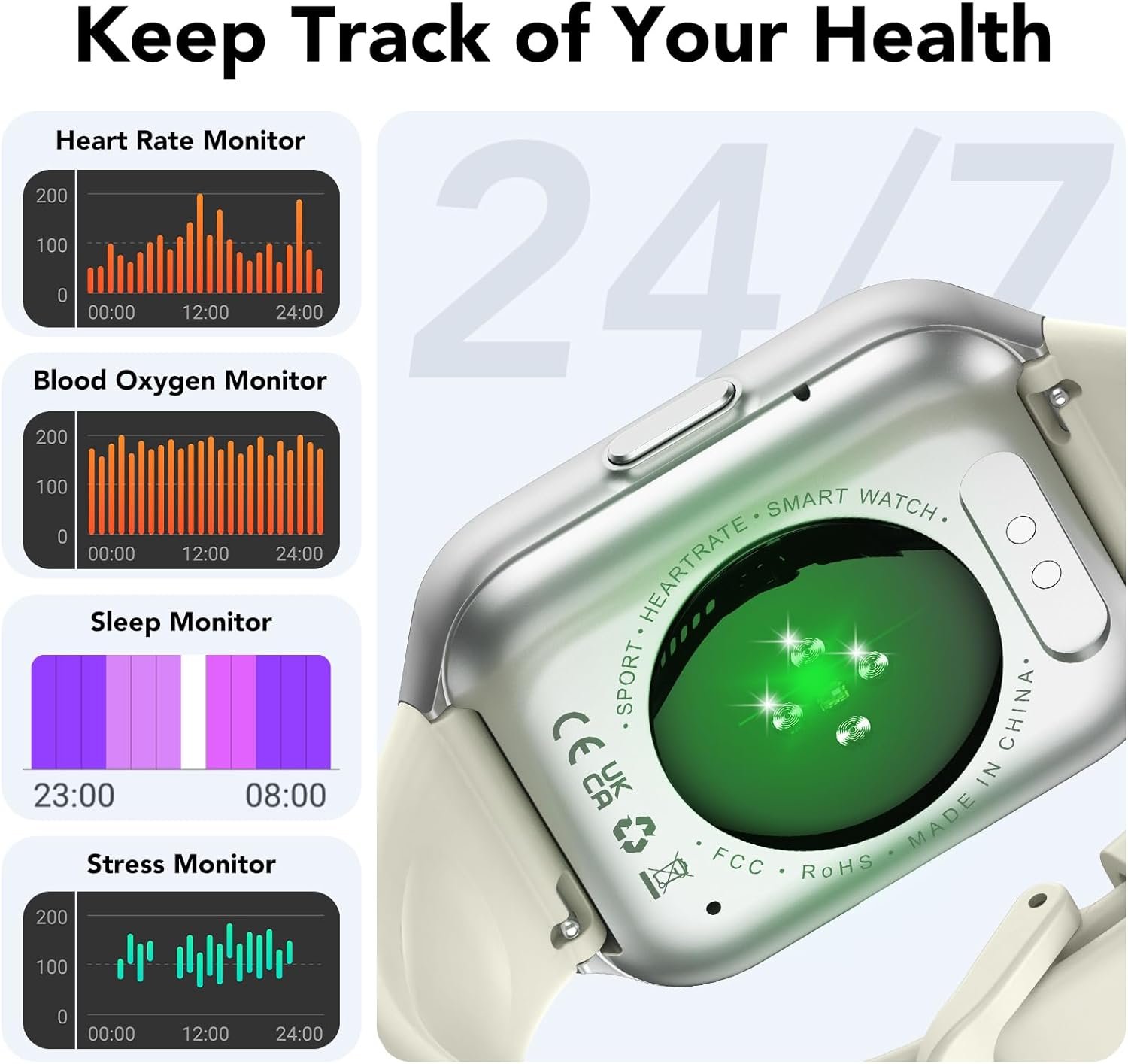 120+ Sports Modes & IP68 Waterproof: The 2024 activity tracker supports over 120 sports modes, including Running, Walking, Hiking, Badminton, Basketball, Boating, Climbing, Cycling, Fitness, Football. Swimming, Yoga & More. During your exercise, it will record your data like heart rate, steps, calories burned, distance in real time. Sport watch is IP68 waterproof rating, ensuring worry-free use even while washing hands, face, or engaging in sweaty activities. However, it is not recommended for use in hot water or seawater.