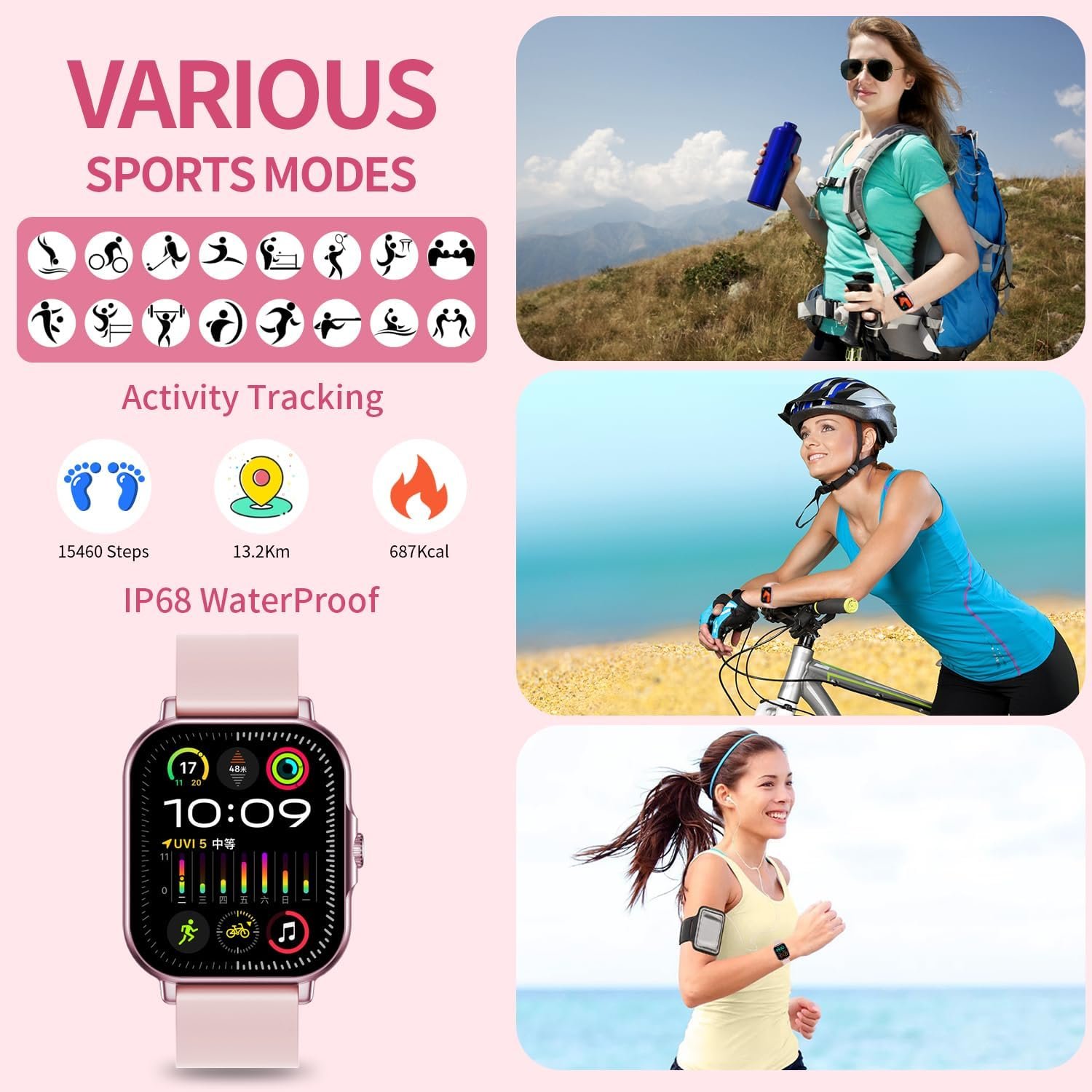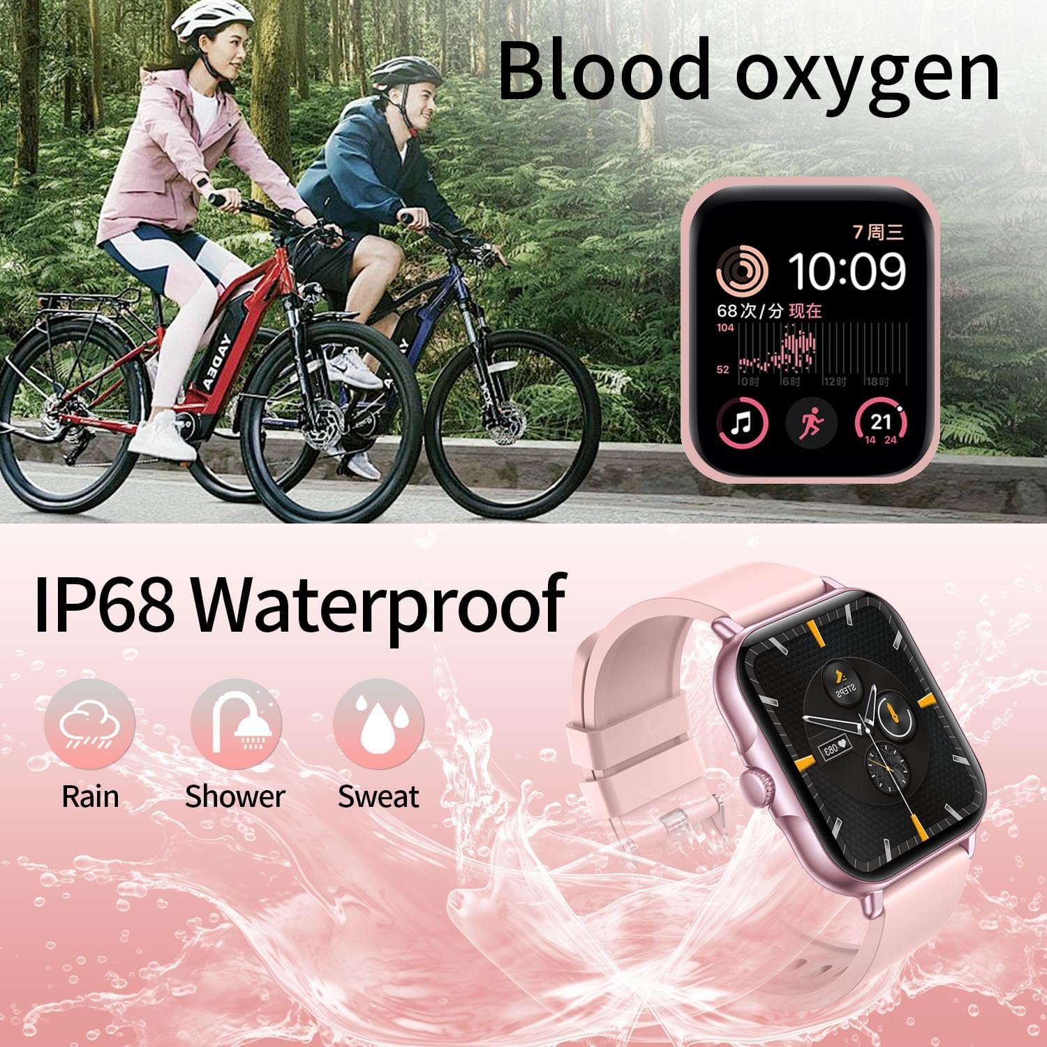 【Multiple sports modes and IP68 waterproof 】This fitness watch supports multiple sports modes (running, cycling, strength training, basketball, tennis, volleyball, soccer, badminton, etc.). Real time measurement of steps, distance, calories, heart rate, and blood oxygen exercise time can help you adjust training intensity to achieve optimal effect. The IP68 waterproof design of the sports watch allows you to wear it on rainy days without worrying, perfectly meeting your daily waterproof needs.
