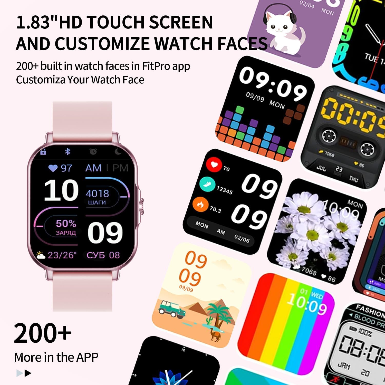 【1.83 Inch HD Color Touch Screen 】The smart watches for women and men adopt with 1.83 inch large screen that with full screen touch fundction. It ensures smooth operation and has a resolution of 240 * 286. The smartwatch screen is better in terms of color saturation and reproduction. By providing multiple customized dials, personalize your smartwatch for both men and women, and create your own stylish smartwatch.