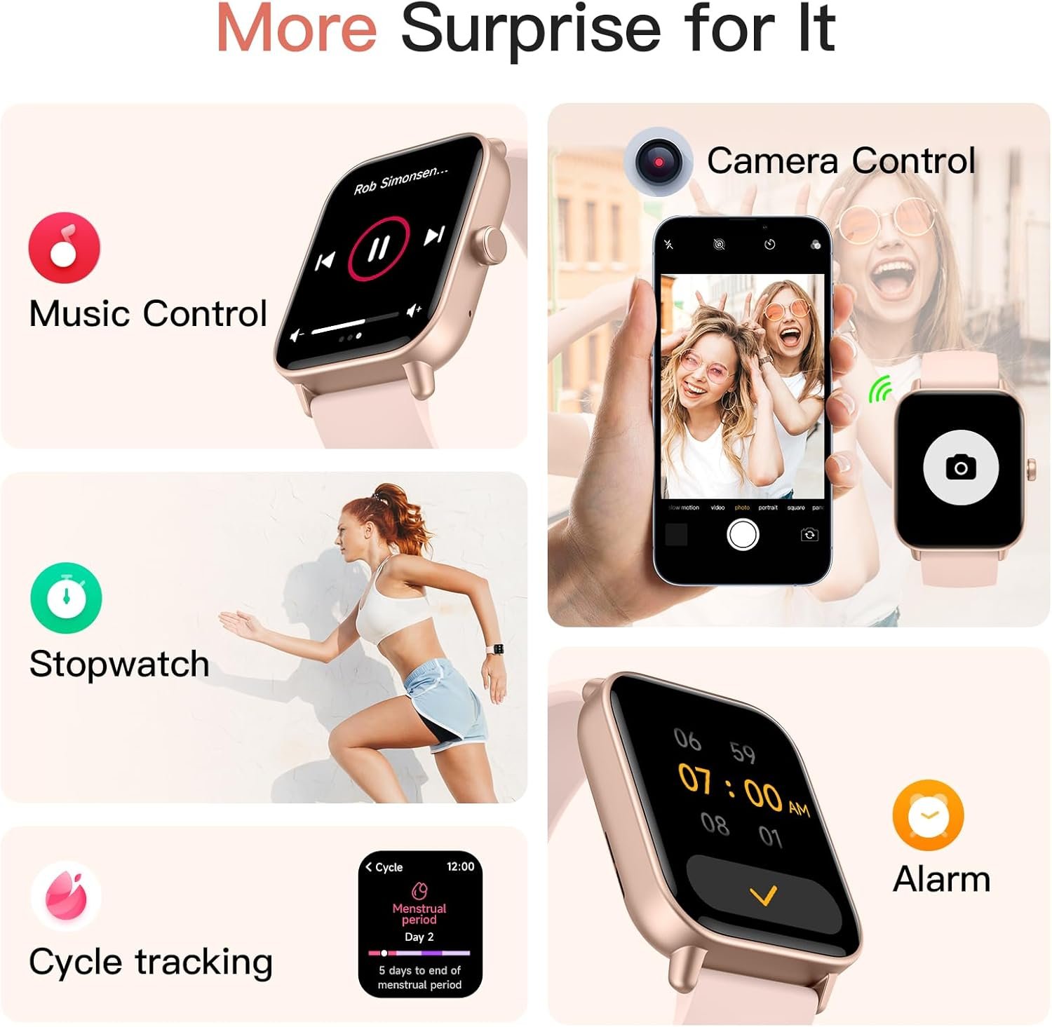 Long Battery Life and Multifunctional: Smartwatches with a built-in large-capacity battery, 2.5 hrs of charging, which allows it to last about 5-7 days for daily use, and has a long standby time of about 30 days.This digital watch can fit well both for women and men, built-in Alexa, multiple functions such as alarm clocks, music control, stopwatch, timer, deep breath guide, sedentary reminder, female menstrual cycle tracker, etc