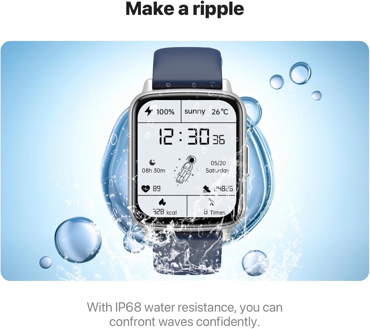 What’s in the Box:Smart watch,User Manual,Charging Cable.The adjustable strap measures 25 cm in length and 22 mm in width, available in multiple colors to match your style