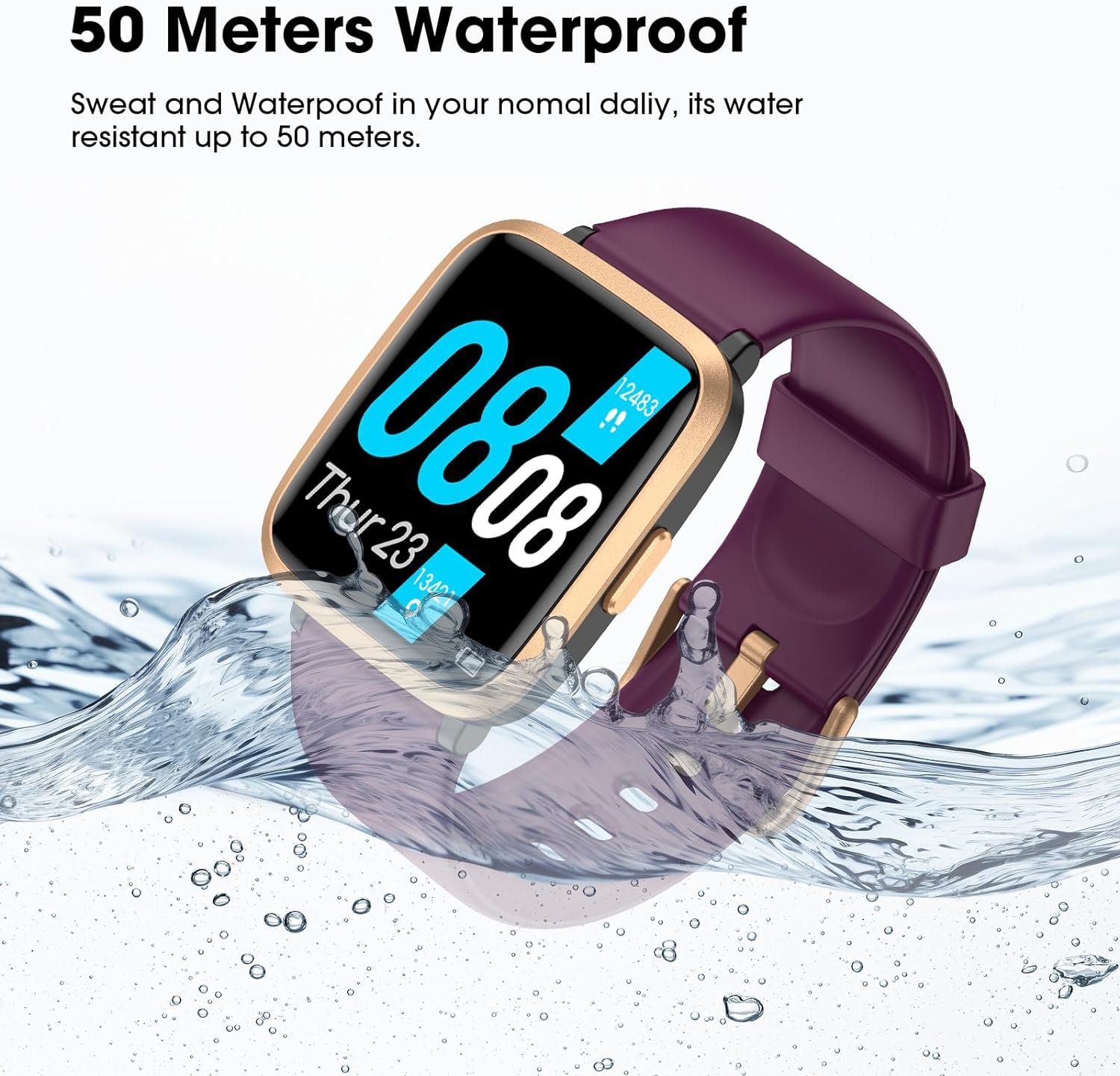 50 Meters Waterproof & Long Battery Life: Our fitness smart watch are designed with 50 meters water resistance rating, so it won’t be damaged even when exercising, washing hands and sweating.This watch has a built-in large battery capacity , which supports 7 days of normal use and 35 days standby time for only 2.5 hours charging