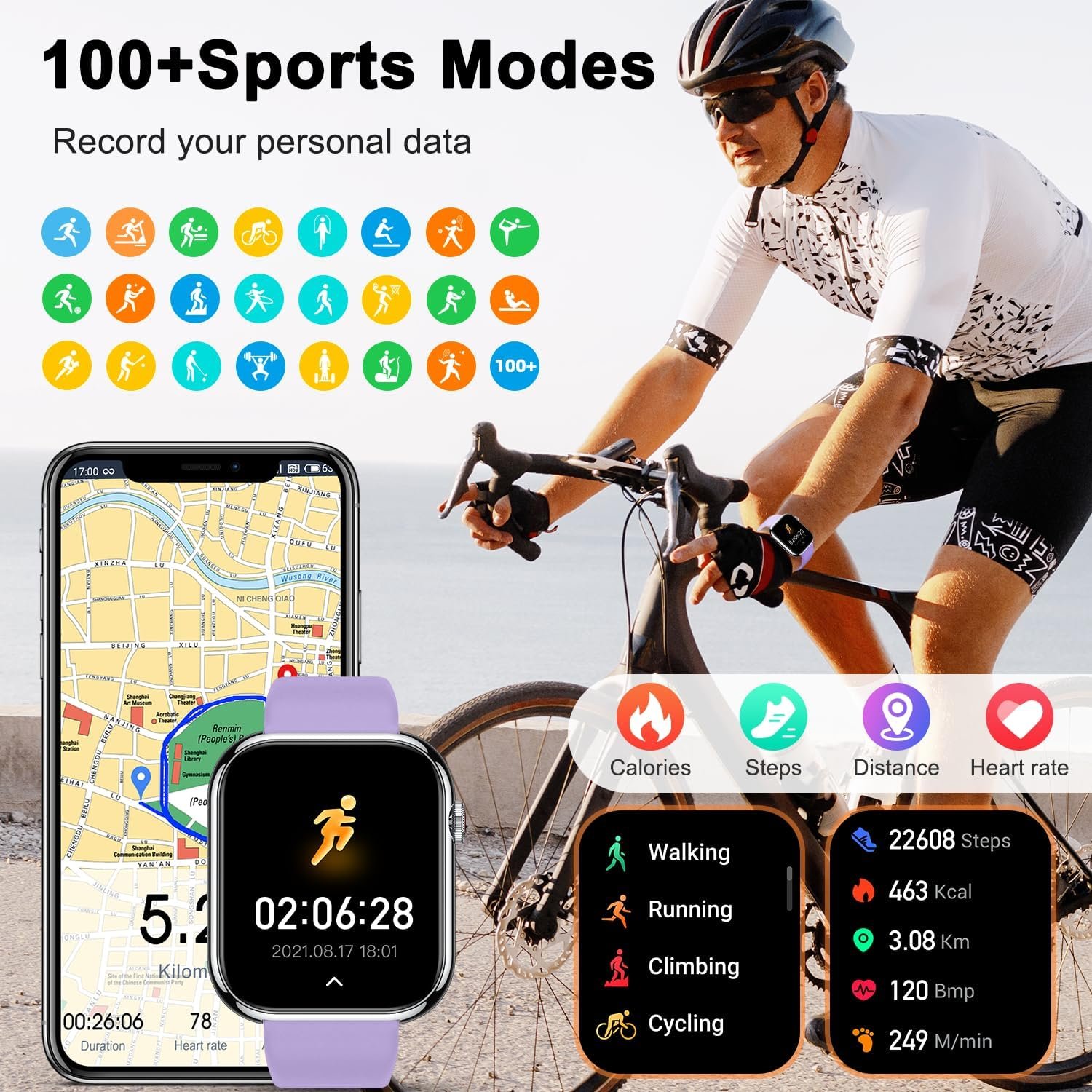 5. 112+ Modes Activity Tracker: Support 112+ Multi-Sport Modes (walking, running, cycling, Basketball,et.)