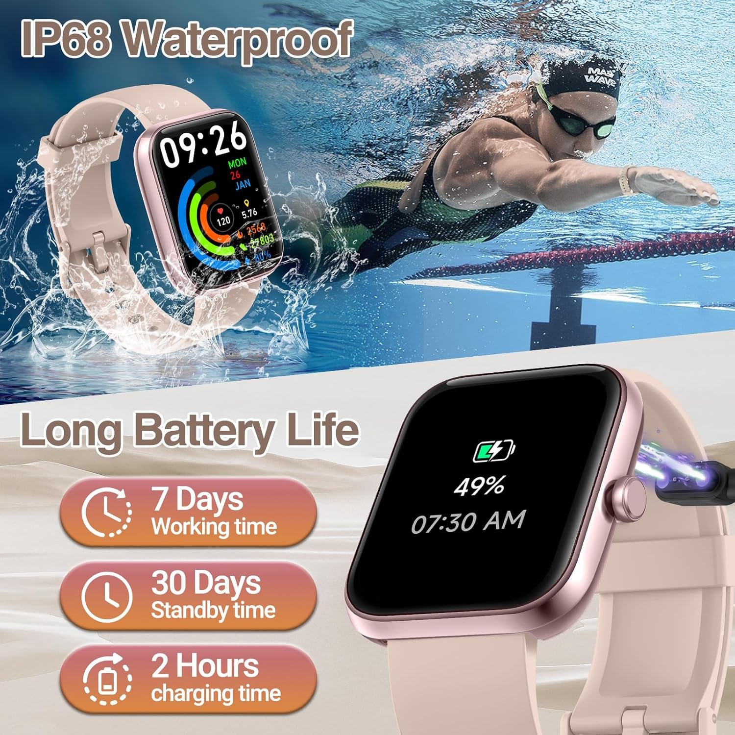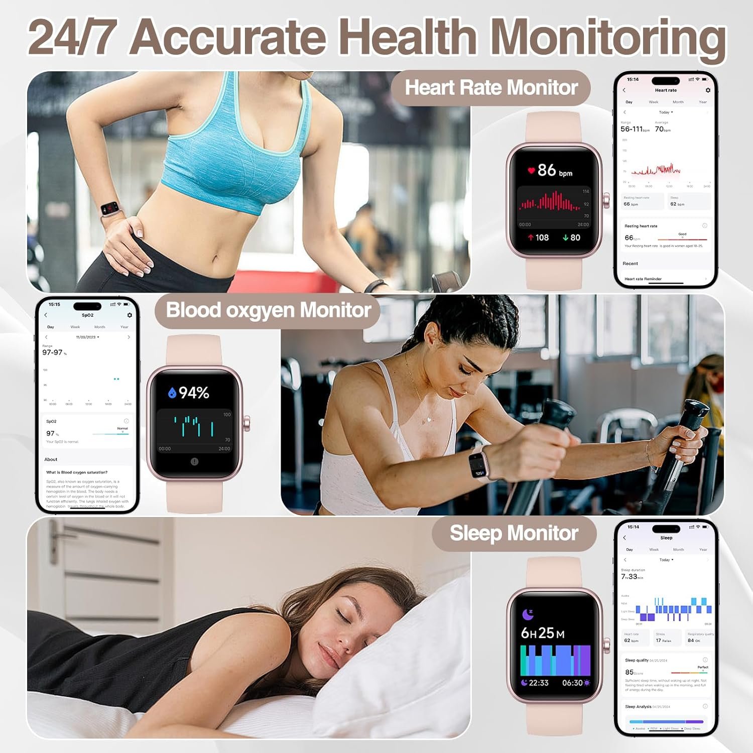 Our smart watch for men women provides health monitoring for heart rate,SpO2,sleep,stress and more to take care of your health.
