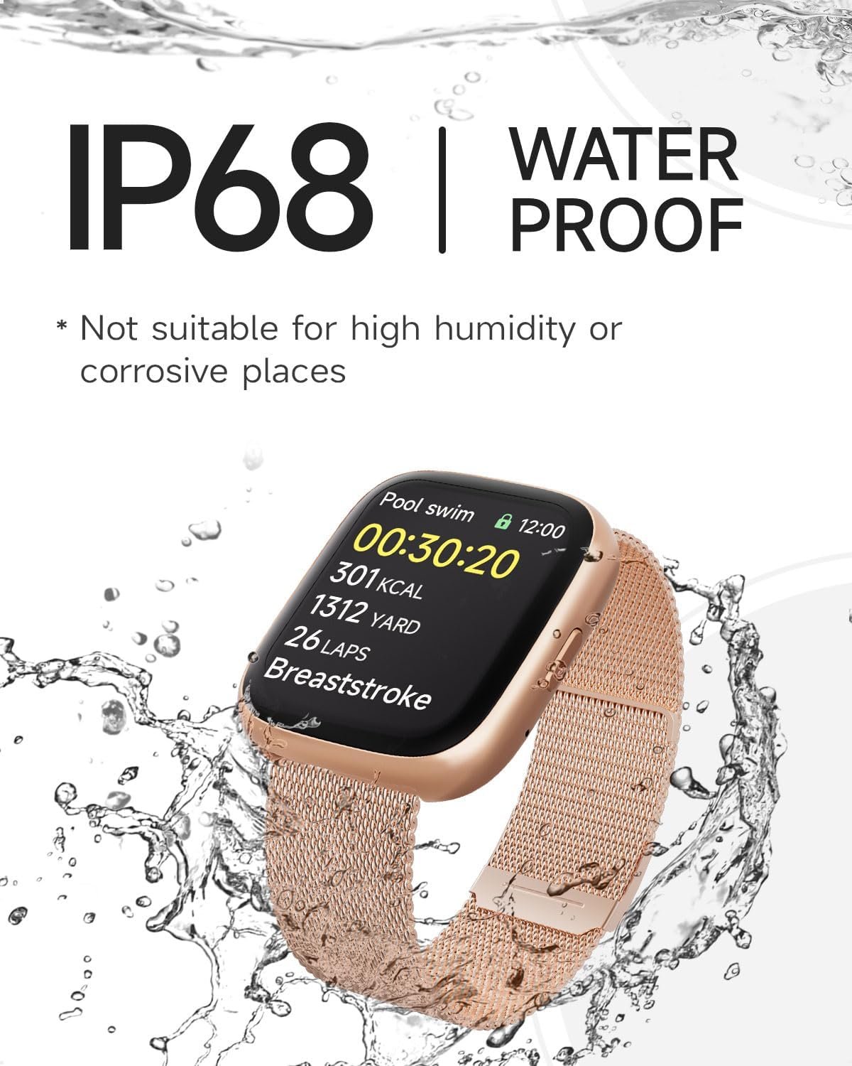 Fitness & Activity Tracker: Track your health and fitness goals with TOOBUR’s fitness watch for women. Monitor real-time heart rate, and stress levels, with instant alerts for any irregularities. And Your can track your period with menstrual cycle tracking and ovulation prediction as well. Choose from over 100 sports modes to track steps, calories, distance, and speed. With IP68 waterproofing, our smartwatch is perfect for swimming and all activities.