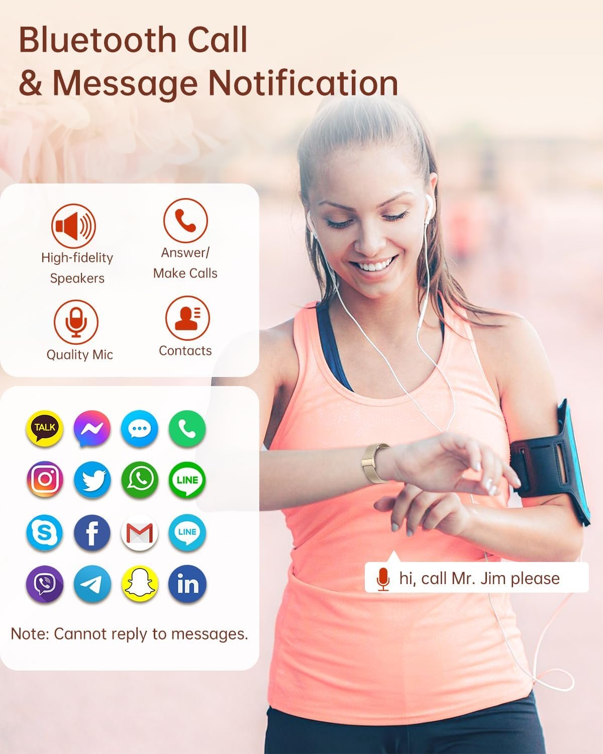 【Bluetooth Call & Smart Notifications】Just need to pair the Bluetooth watch with the phone once, and you can answer/make calls directly on the women’s smartwatch. The iphone/Andriod smart watch for women supports fast communication, you can add 10 contacts to digital watches and view call records. It also has message notifications, including text and SNS notifications (Instagram, Twitter, Facebook, Whatup, etc.). Note: Cannot reply. AI voice assistants make everything simple and easy.