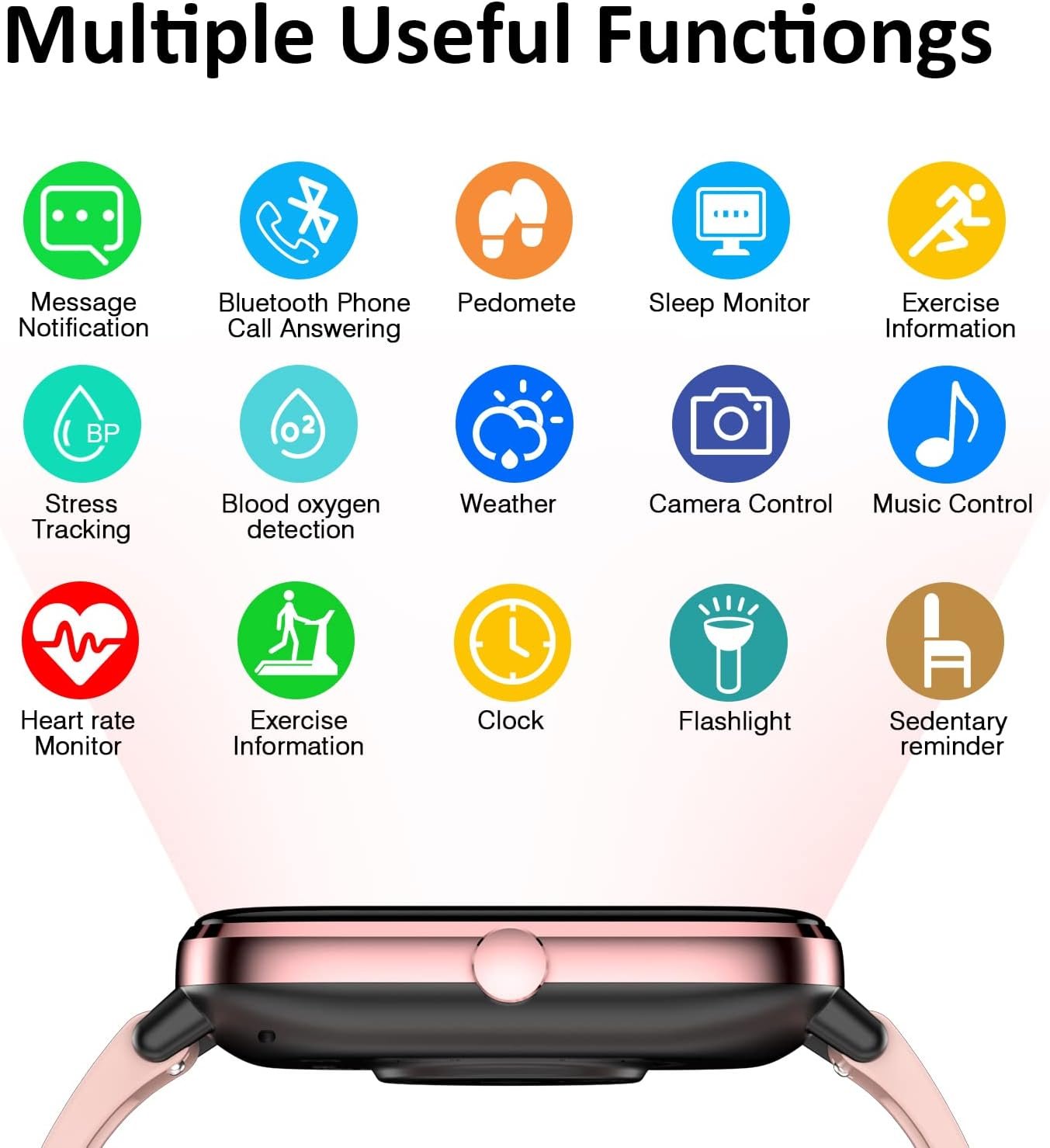 Intelligent Notification and Health Reminder: Smartwatch for men women notify you incoming calls, SMS notifications. when you connect the smartphone with fitness tracker. Connect fitness tracker with your phone, you will never miss a call and a message. The smart watches for android phones will vibrate to alert you if your phone receives any notifications. You can reject calls and view message directly from your watch. Note:Can’t reply to message