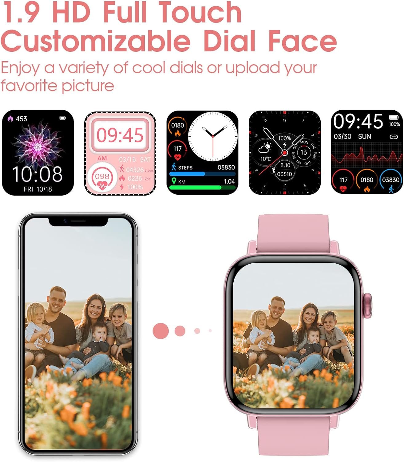 2024 Newly Released Smart Watch with 1.9” Full Touch Screen–Call Receiving/Dialing/Heart Rate/Blood Pressure/ Step Counter/IP67 Waterproof/ Pink