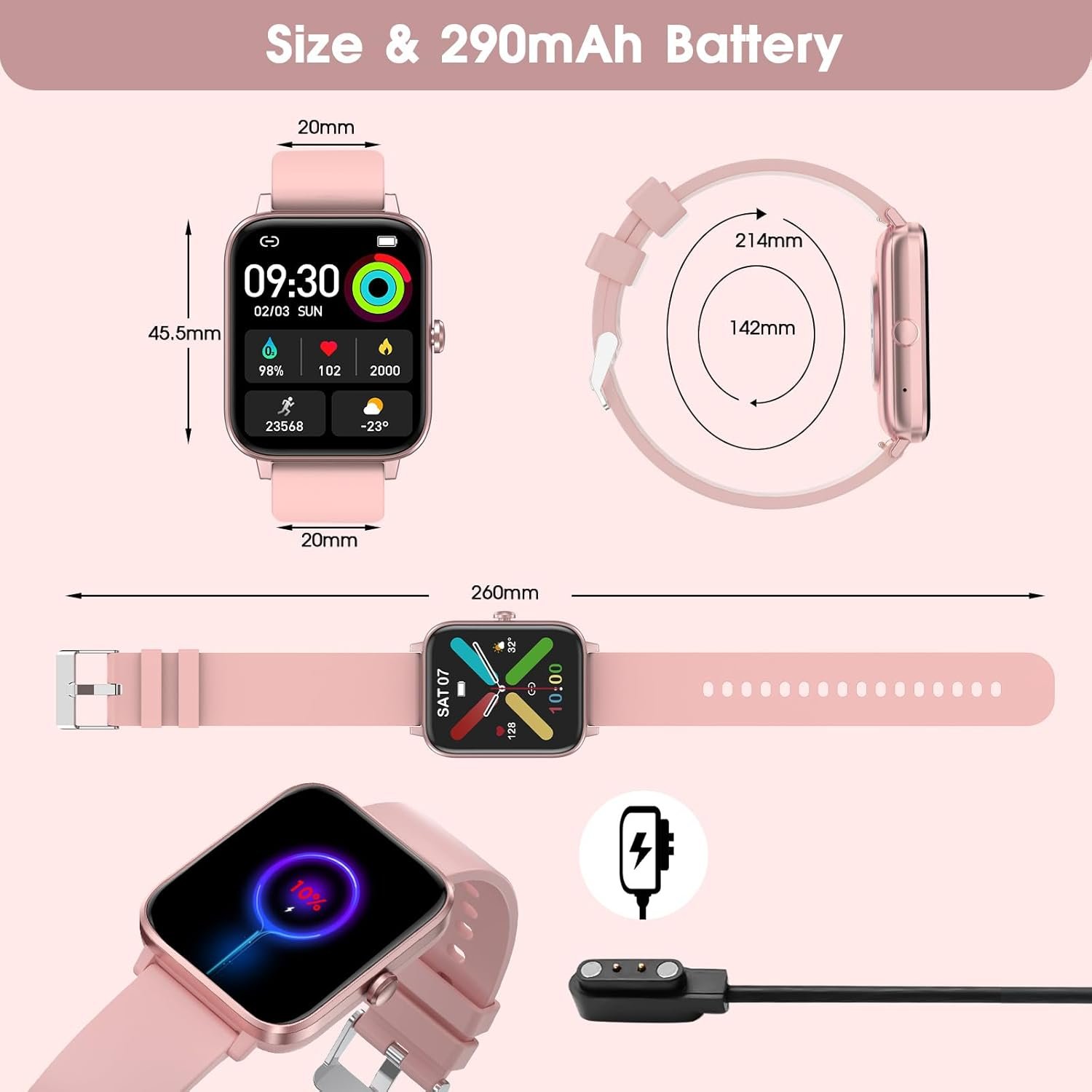 Smart Watch for Women (Dial/Answer Call), 42mm Bluetooth Smart Watch for iPhone Compatible, IP68 Waterproof Android Smart Watch Fitness Tracker with Heart Rate/Sleep/ Spo2/Sress Montior (Hot Pink)