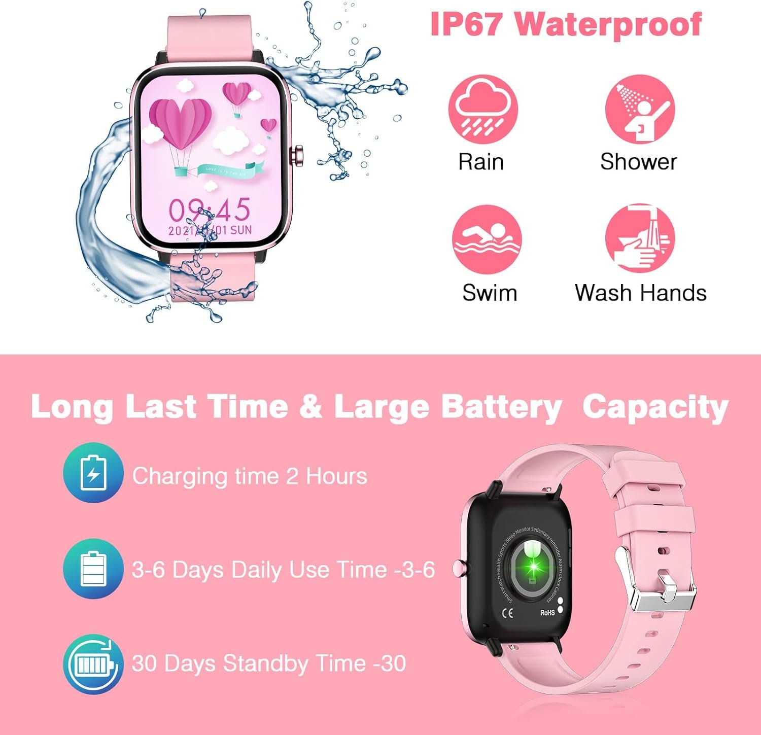 IP67 Waterproof Rating: This black smartwatch Designed to withstand daily water exposure and hand-washing, NOT suitable for swimming, diving and bathing