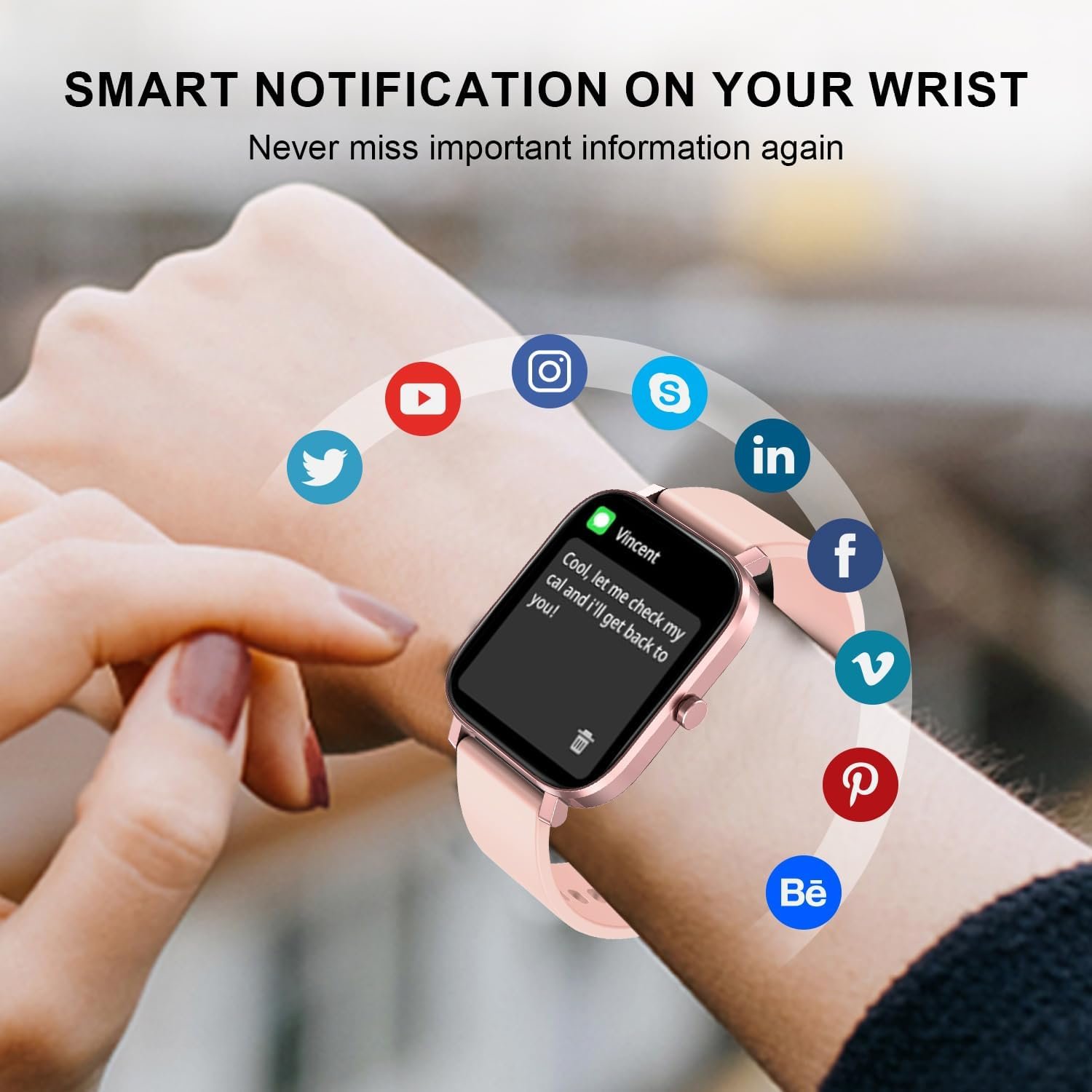 [Call and Mesaages Notification] Smart watch for android phones will vibrate to remind you when your smartphone receives call notification, SMS and APP messages (WhatsAPP, Facebook, Messenger, Instagram) so you don’t miss every message .