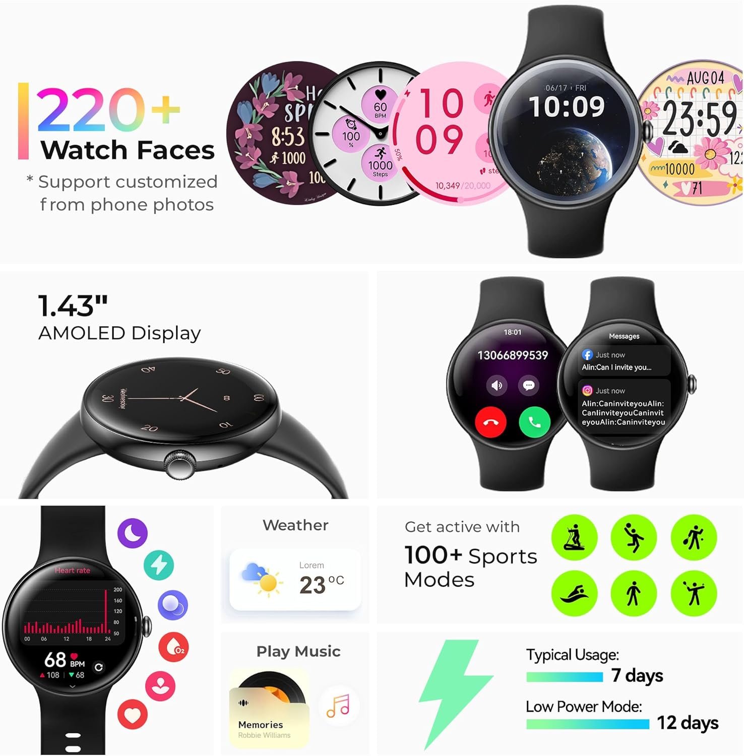 ![Smart Watch for Women Men [1.43” AMOLED Display], Health/Sleep/Stress/Fitness Tracker, Bluetooth Call, 7-Day Battery, 220+ Watch Faces, 100+ Exercise Modes, 3ATM Waterproof Smartwatch for Android iOS Smart Watch for Women Men [1.43” AMOLED Display], Health/Sleep/Stress/Fitness Tracker, Bluetooth Call, 7-Day Battery, 220+ Watch Faces, 100+ Exercise Modes, 3ATM Waterproof Smartwatch for Android iOS](https://i0.wp.com/m.media-amazon.com/images/I/61YoXyWLAWL._AC_SL1500_.jpg?w=986&resize=986,1500&ssl=1)