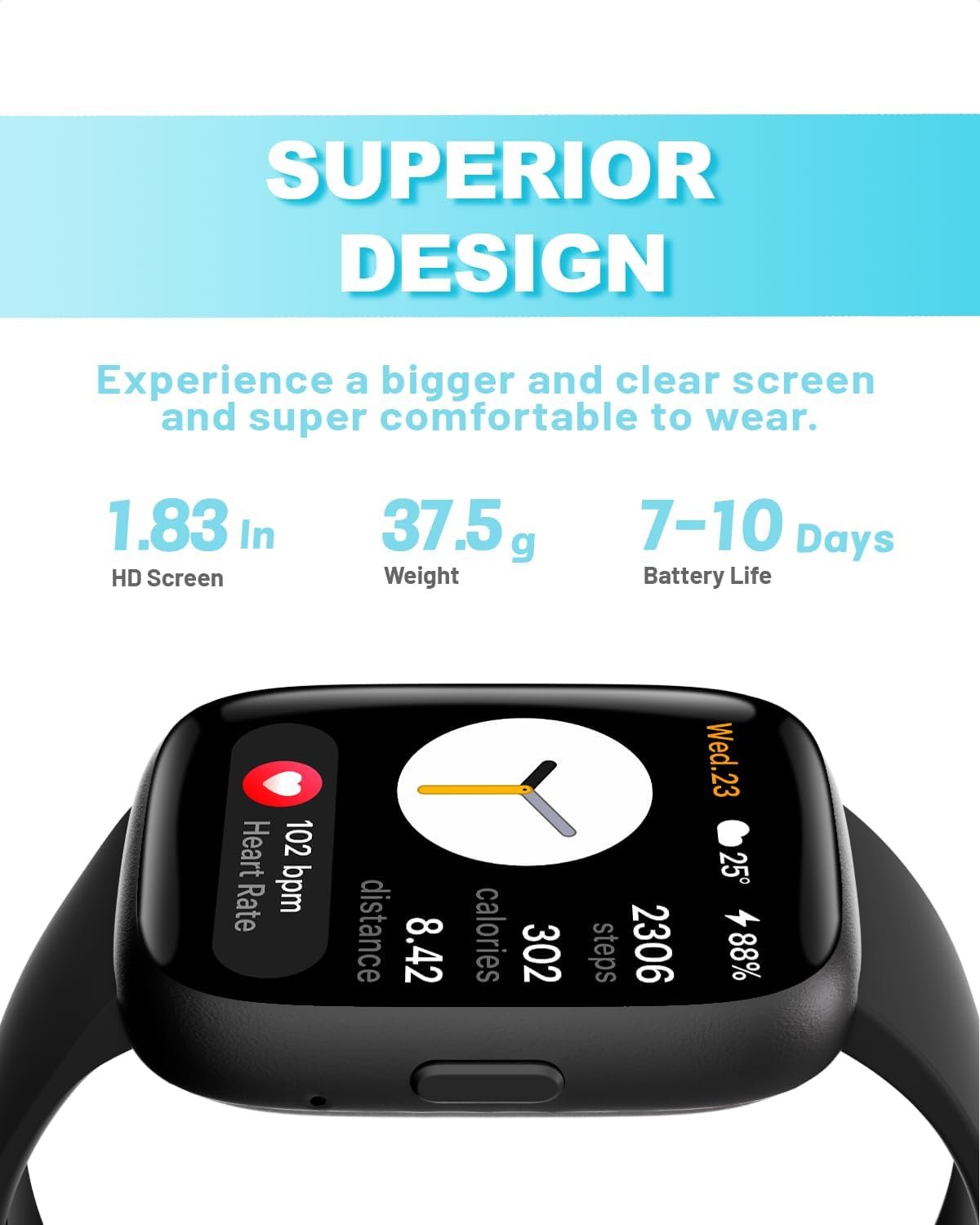 1.83″ HD Screen & Customizable Watch Face: Experience crystal-clear visuals like never before with our smartwatch’s 1.83 inch high definition screen. Upload your own photos to express your unique style whether it’s selfies or pictures of cherished moments, make your smartwatch truly your own, designed for men with discerning tastes.