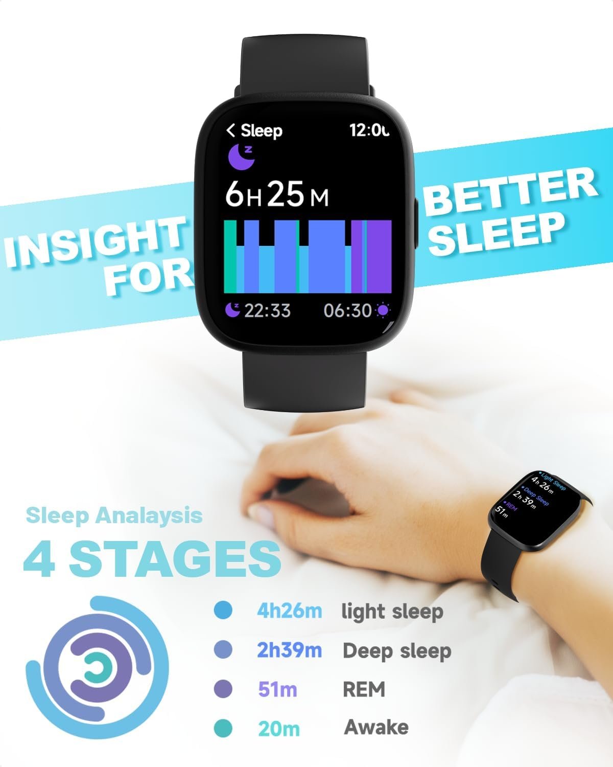 Get a Better Sleep: This sleep tracker for men monitors REM, light, and deep sleep, sending data to the “VeryFit” app for personalized insights and tips. Improve your sleep habits and wake up refreshed. Please note that more than 3 hours of sleep is required to be recorded by the test. Long-term wear is recommended!