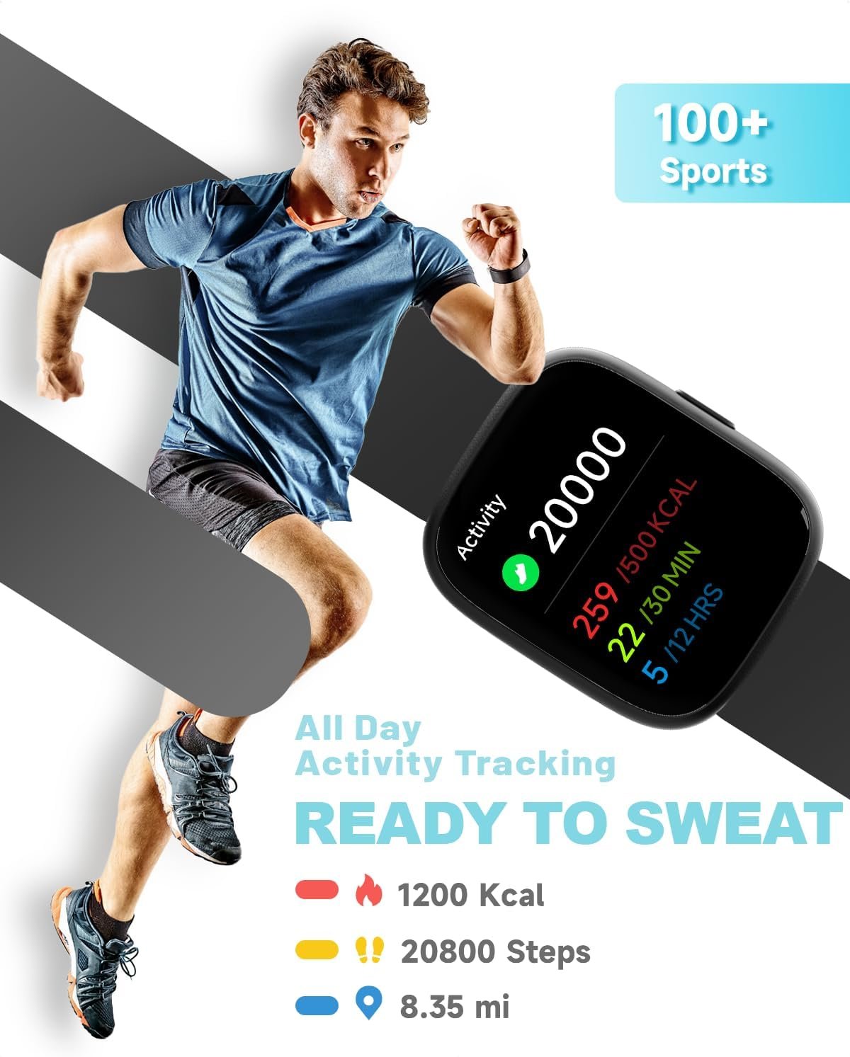 Fitness & Activity Tracker: Track your health and fitness goals with TOOBUR’s fitness watch for men. Monitor real-time heart rate, and stress levels, with instant alerts for any irregularities. Choose from over 100 sports modes to track steps, calories, distance, and speed. With IP68 waterproofing, our smartwatch is perfect for swimming and all activities.