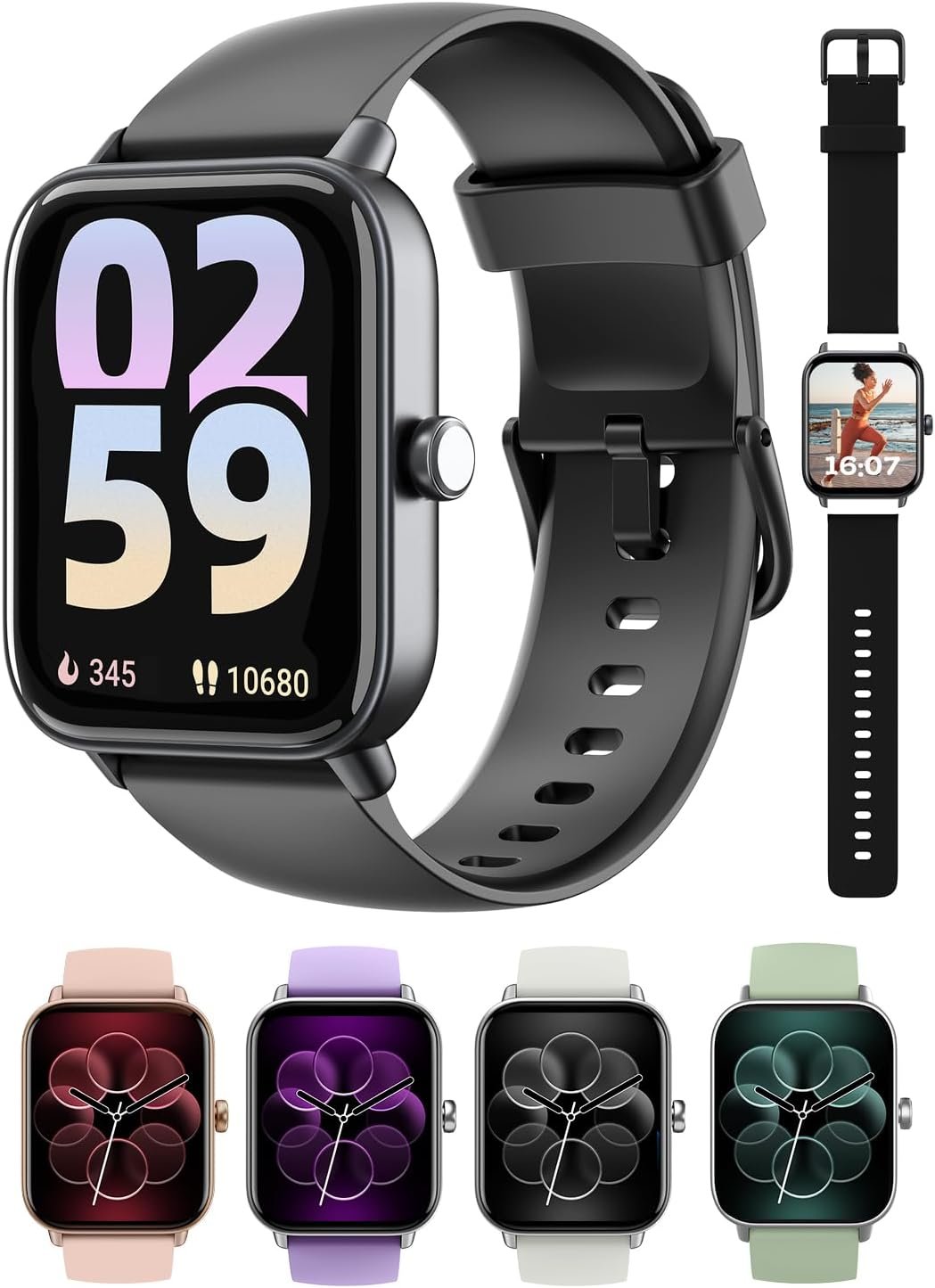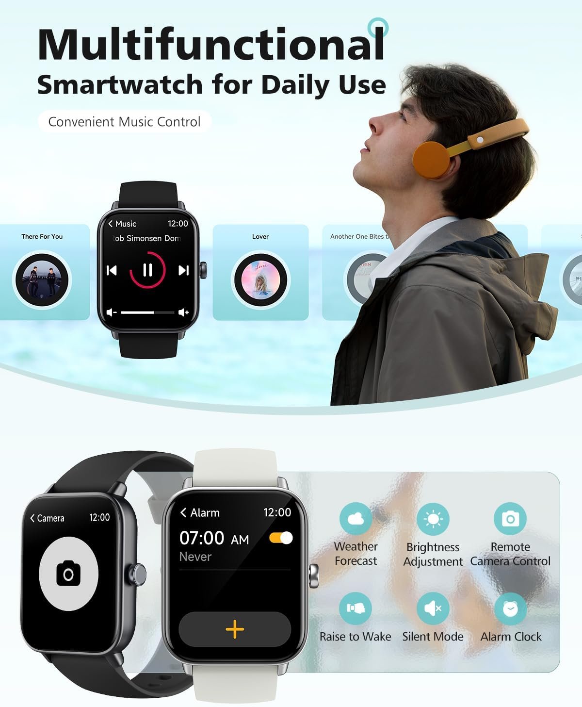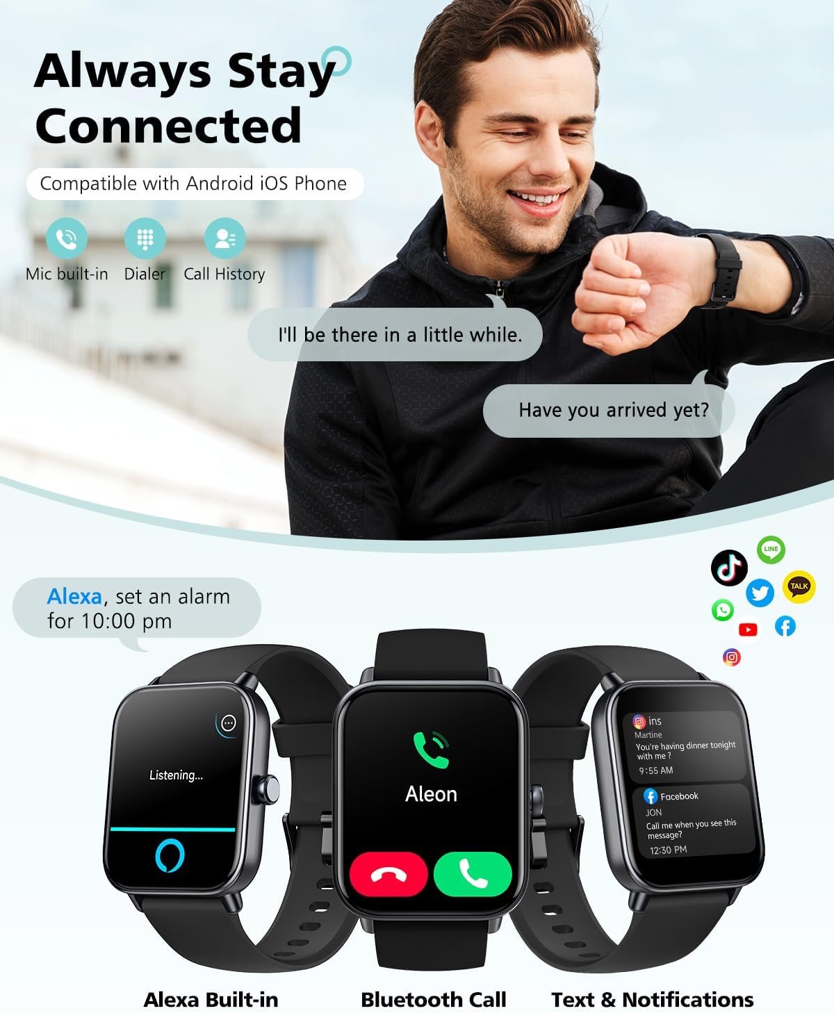 🤖【Alexa Assistant & Smart Functions】Smart watch built-in Alexa assistant, you can ask for news, weather, and set reminders, control smart devices connected to the Amazon platform, enjoy more conveniently and smarter life. Practical daily functions, including weather forecast, alarm clock, timer, music control, camera control, sedentary reminder, find phone, menstrual period record, and other features.