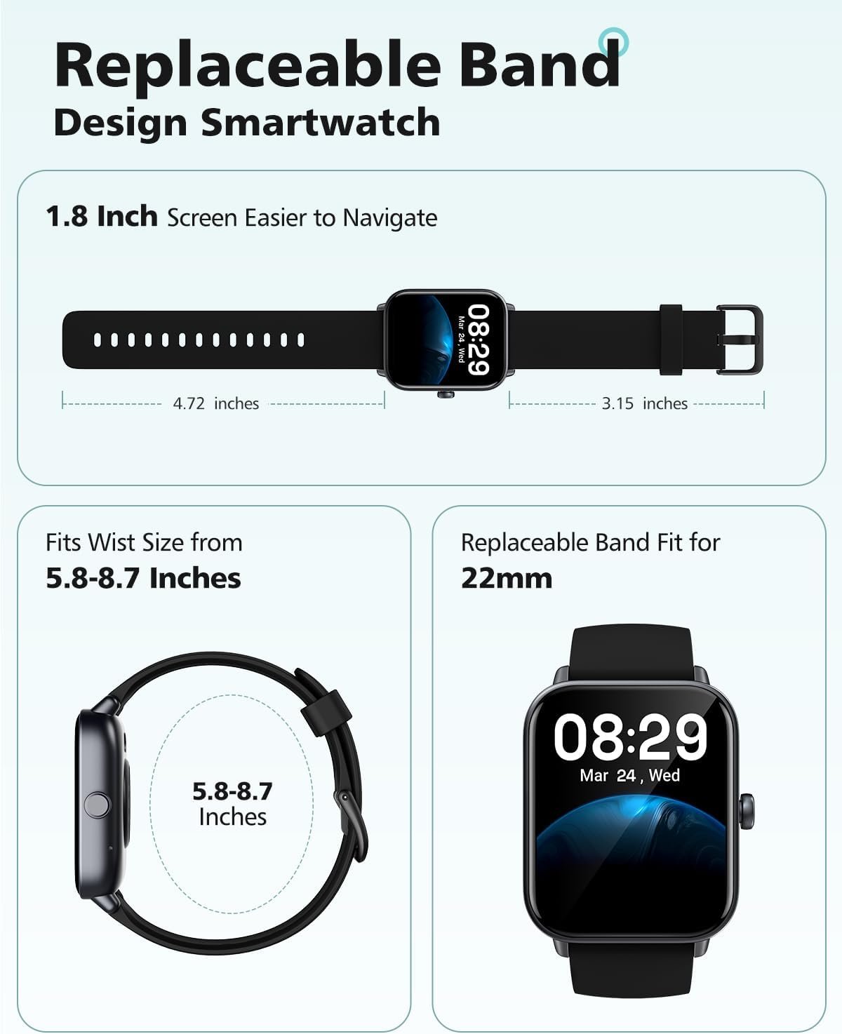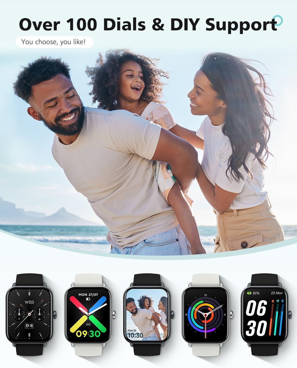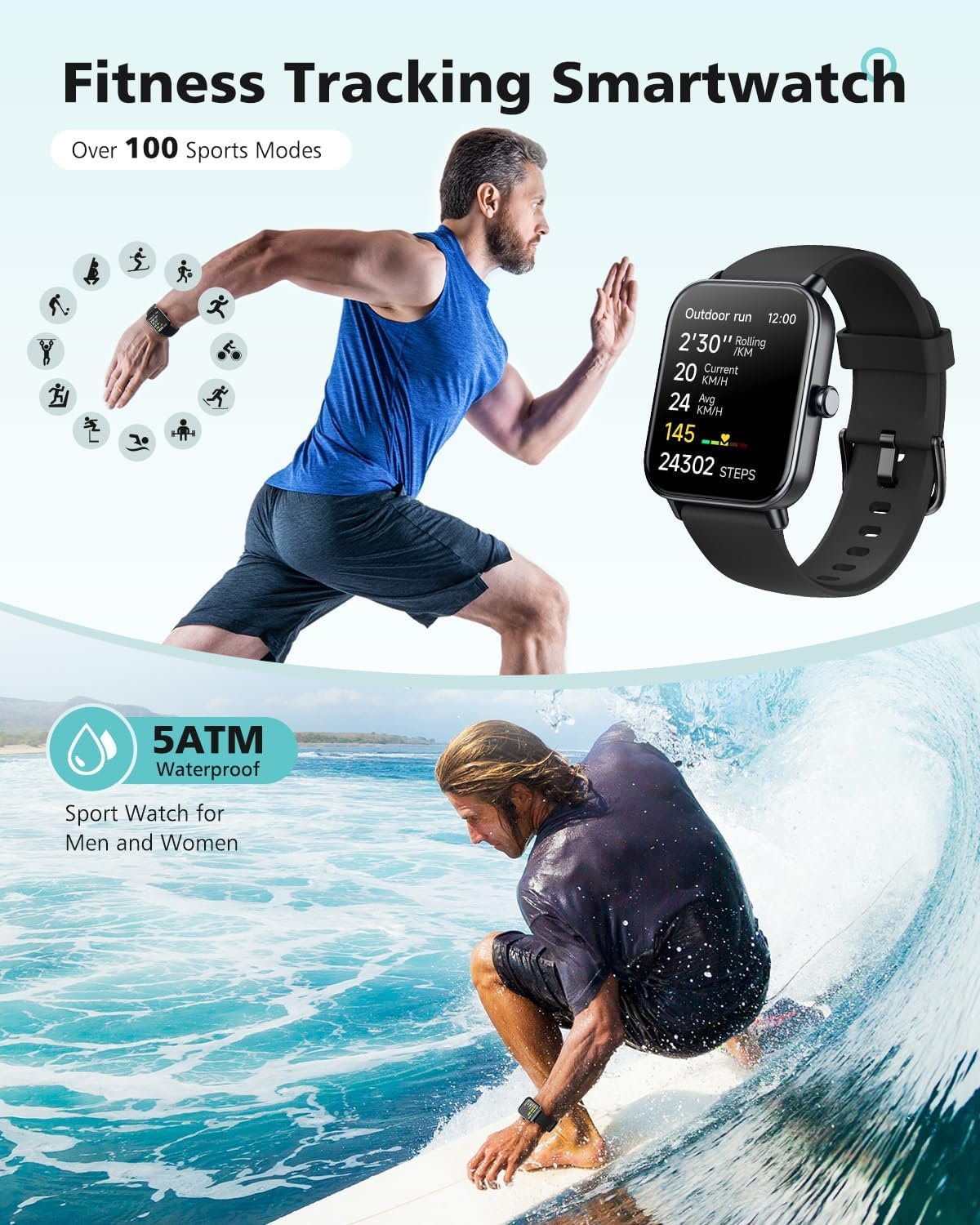 🏃【Waterproof Sports Modes Tracker】Fitness tracker smart watch With 5ATM water resistance, activity trackers meet most sports enthusiasts needs, anti-sweat, anti-rain, so don’t worry about when you washing your hands or even swimming or surfing. Supports over 100 sports modes tracking, such as running, rock climbing, cycling, yoga, and so on. Smartwatch provides fitness data, including calories, steps, distance, and workout time, making sure sweating more meaningful.