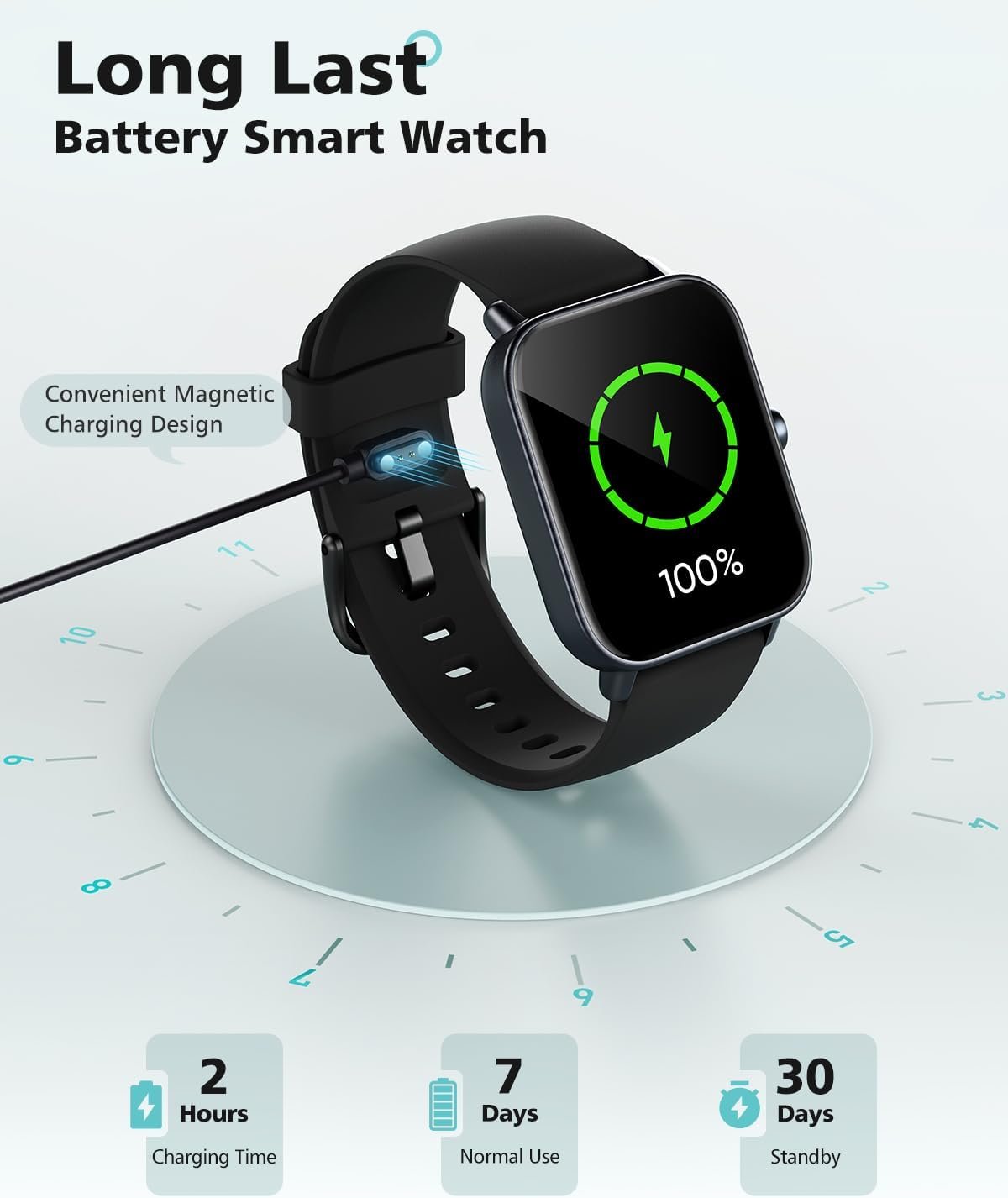 🔋【7 Days Battery & 100 DIY Dials】Fitness watch compatible with Android iOS smartphone. Quickly 100% charged with the magnetic charging cable, smart watch lasts 7 days based on its large capacity and low power consumption battery. Smart watch for men and women has 100 dials to choose from VeryFit App, and also support DIY dials, so you can select your favorite personal photos as your watch background.