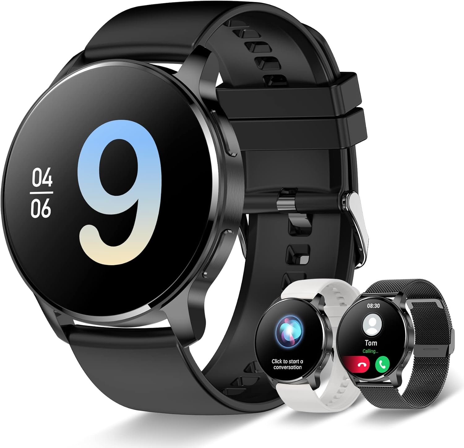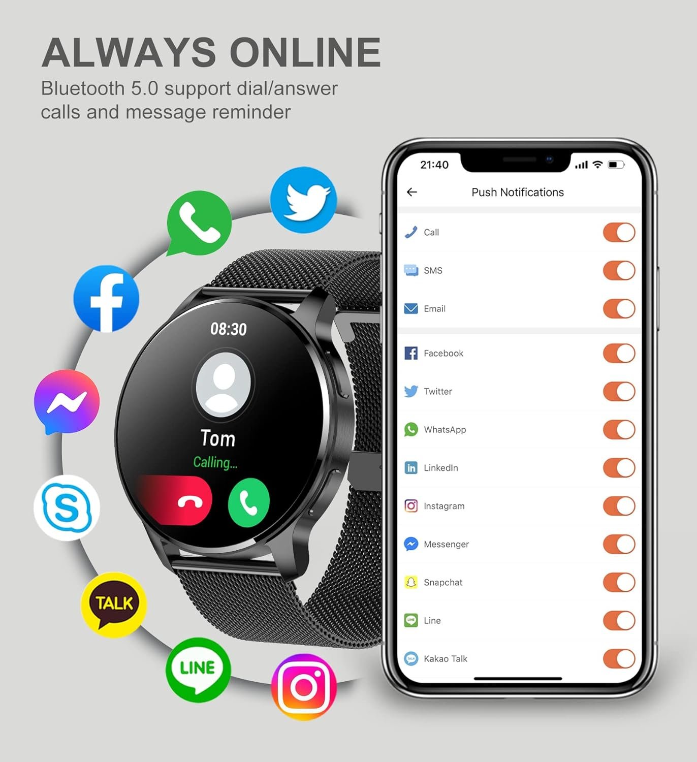 ROUND SMART WATCHES FOR MEN WOMEN: Ultra-thin metal frame with 1.32″ HD full touch color screen brings smooth touch and excellent visual experience. There are 200+ free dials for you to choose from, you can also change your favorite picture as a watch face.