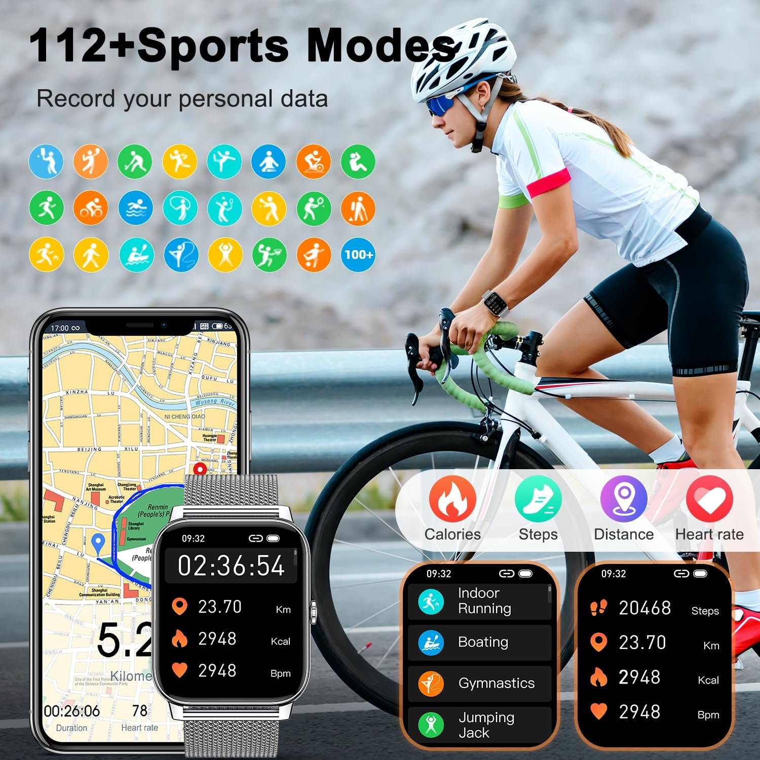 Smartwatch with Heart Rate Monitor Watch – Health watches for women men use sports optical sensors,allowing smart watch to collect health data more accurately,which can monitor heart rate,blood oxygen (Sp02), helping you better understand your health and making a reasonable adjustment to your lifestyle.Fitness tracker watch for women men can monitor your sleep status (deep sleep,shallow sleep,awakening) and provide a comprehensive sleep quality analysis to help become healthier