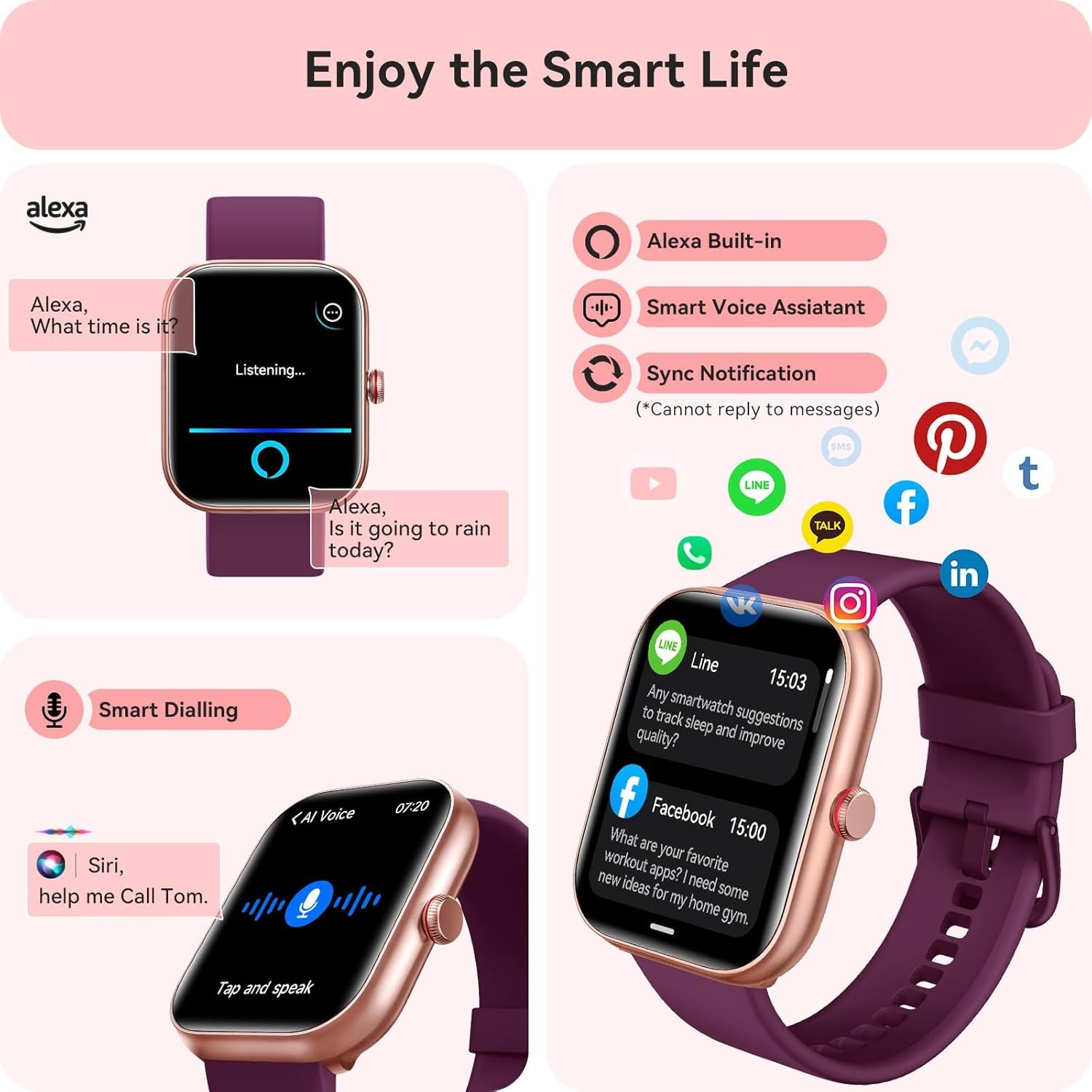 【BUILT-IN ALEXA & BLUETOOTH CALLING】This 2024 brand-new smart watch features an integrated Amazon Alexa voice assistant and supports Bluetooth calling. You can interact with the watch to check messages, play music, set reminders and manage your schedule, get weather and traffic updates, and more. It significantly reduces the need to rely on your phone(Sending SMS is not supported).