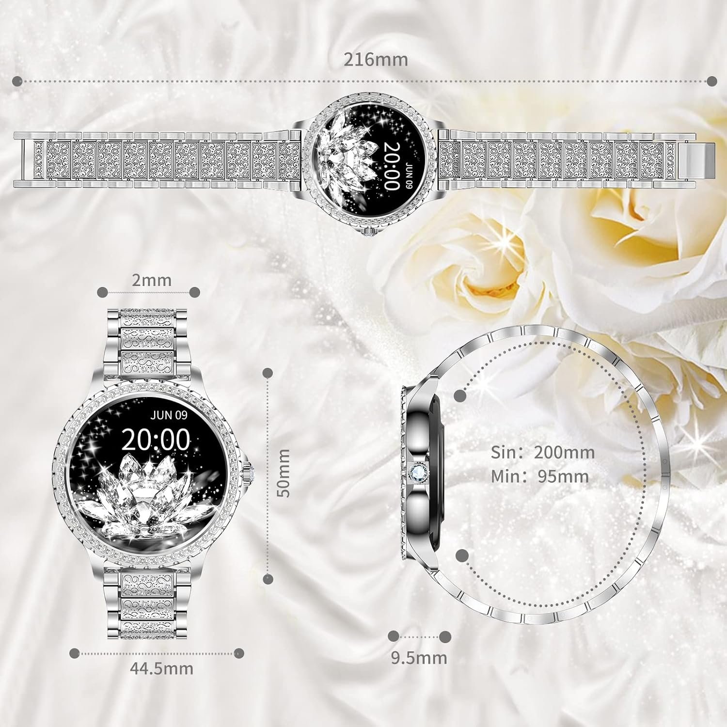 Smart Watch for Women with Diamonds (Answer/Make Call),1.32”Full Touch Screen Smartwatch for Android Phones,Fitness Tracker with Heart Rate/Blood Oxygen/Sleep Monitor,AI Voice with 3 Bling Straps