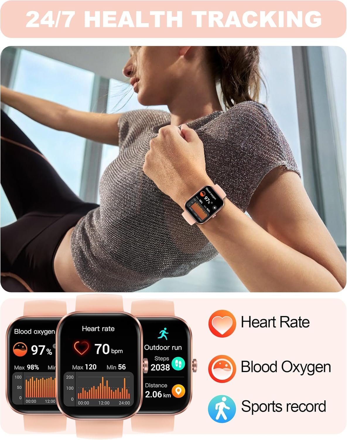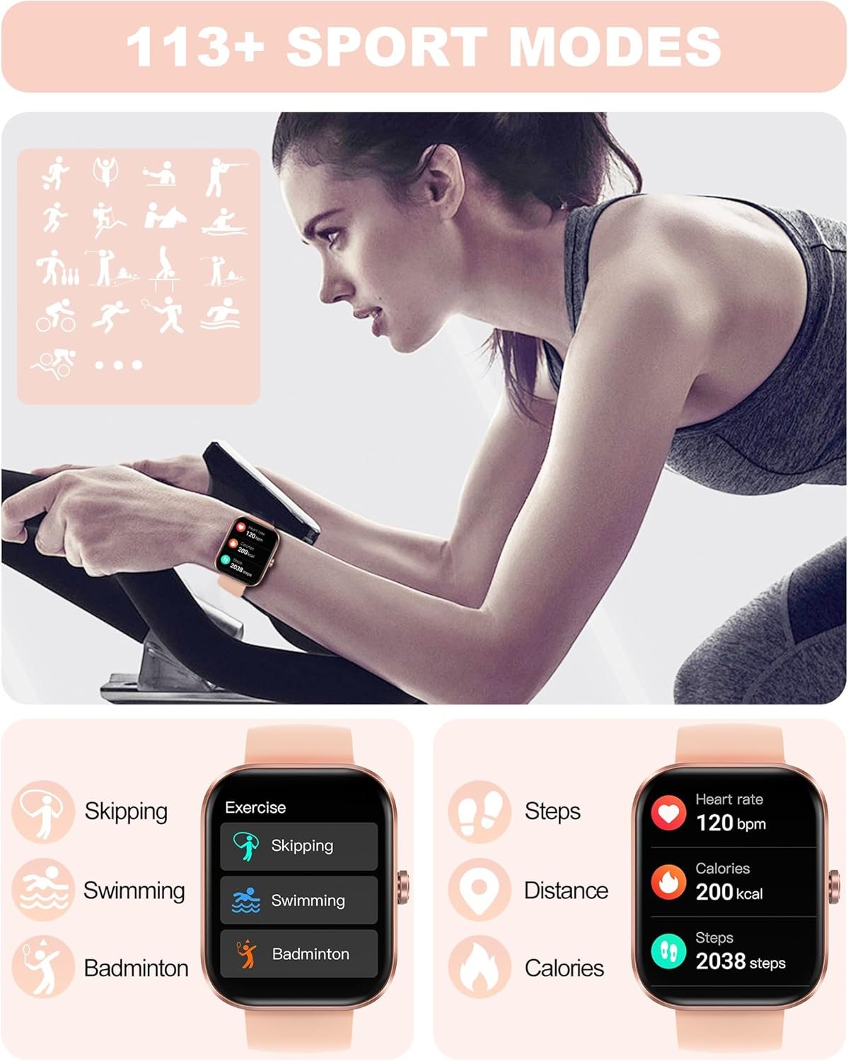113+ Sports Modes: The fitness smart watches for women supports over 113 sports modes, including walking, running, cycling, and soccer. You can visually read exercise data (steps, distance, calories, etc.) on your smart watch, which can help you achieve your training goals and build a healthier lifestyle.