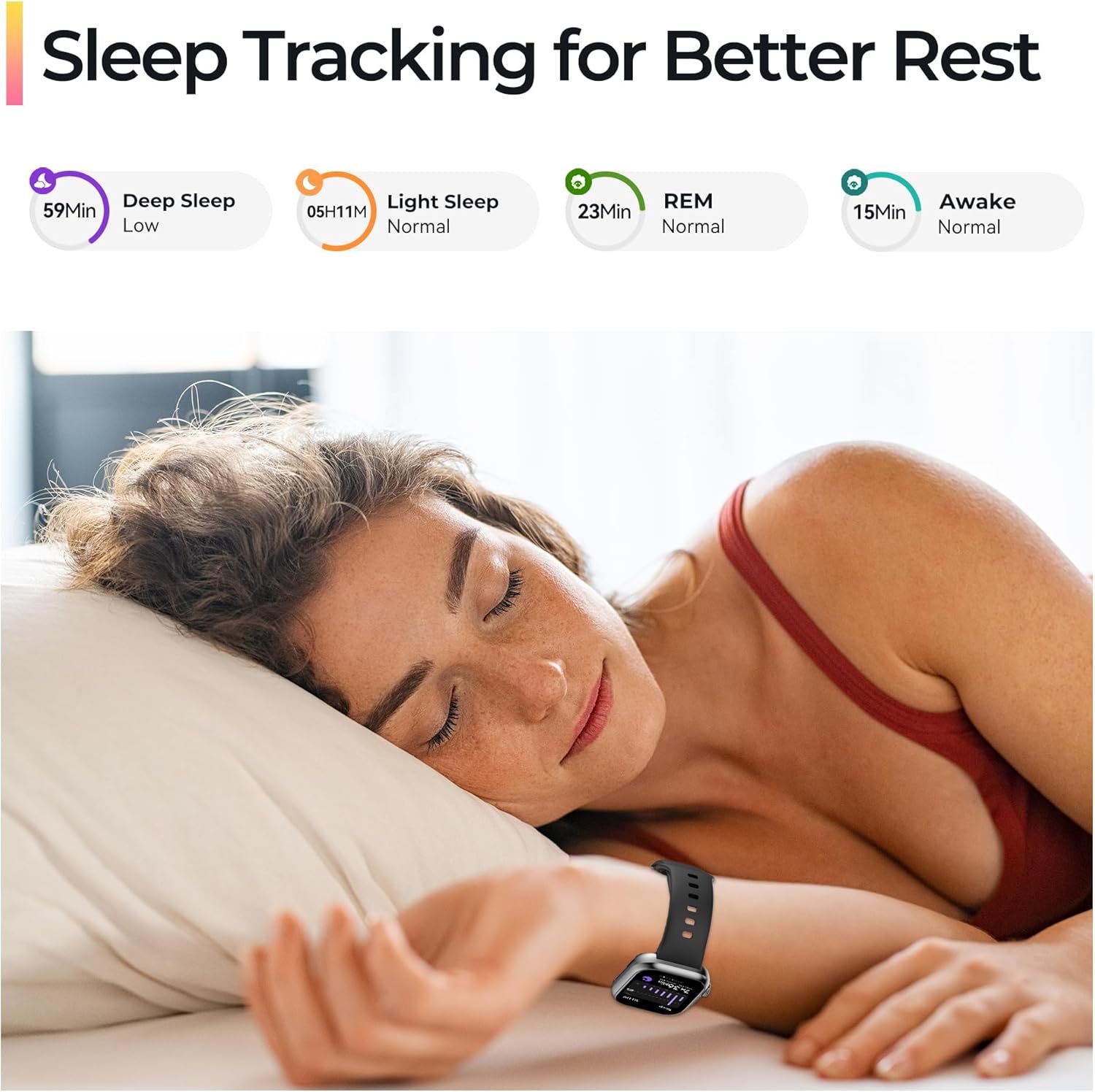 【24/7 Advanced Health & Sleep Tracking】Monitor heart rate on a 24-hour basis with accurate sensors. Support HRV status recording, single-time SpO2 and stress level measuring. Provide elevated/lower heart rate warnings, giving you peace of mind about overall health. Automatic sleep tracking — Deep, Light Sleep, REM and Awake. Generate sleep scores and sleep reports to help you make positive changes for better sleep
