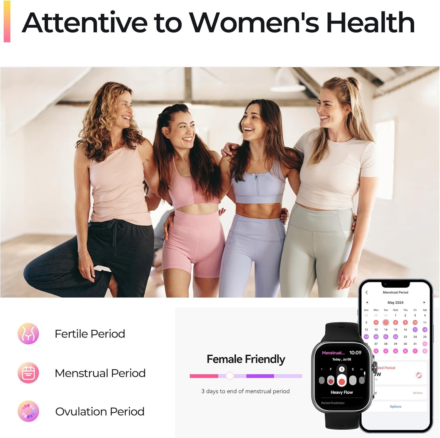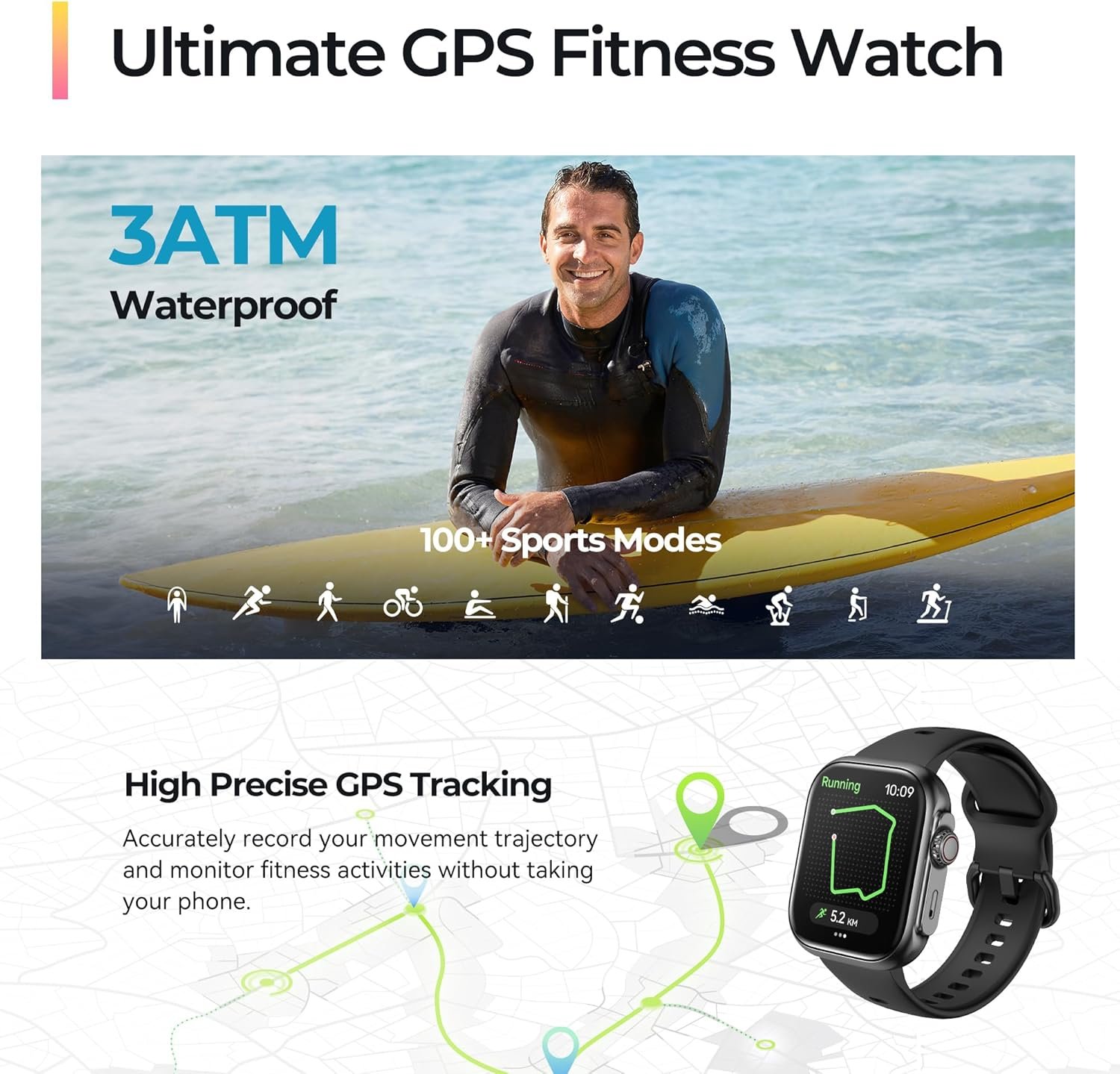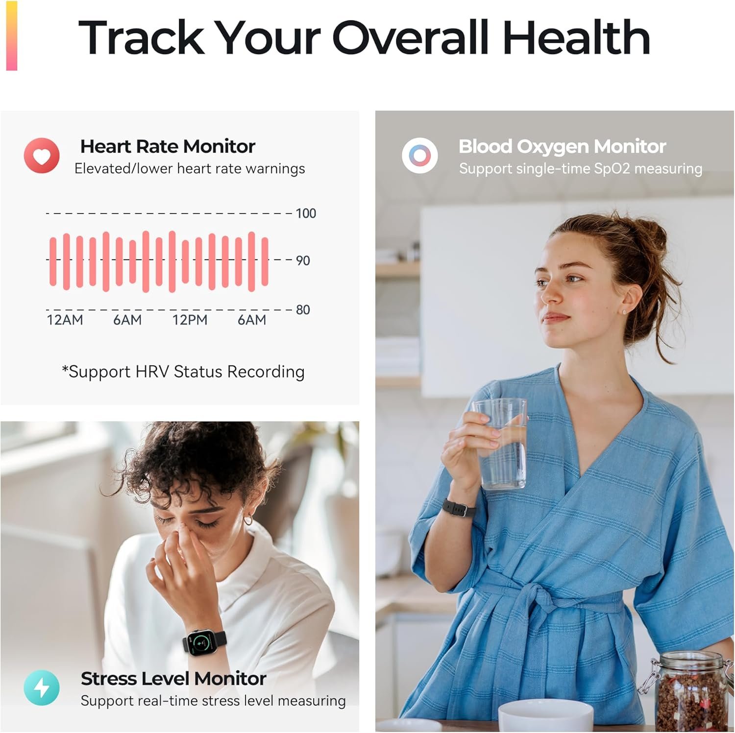 【3ATM Waterproof & 100+ Sports Modes】Track all the workouts you’re moving — including walking, running, swimming, cycling and more. Set personalized goals — Pace/Distance/Calories, allowing you to tailor fitness metrics for every workout. The fitness tracker watch captures real-time workout data, empowering you to track progress and achieve fitness goals. 3ATM (30 meters) water resistance and excellent durability making it easy to give it all you’ve got