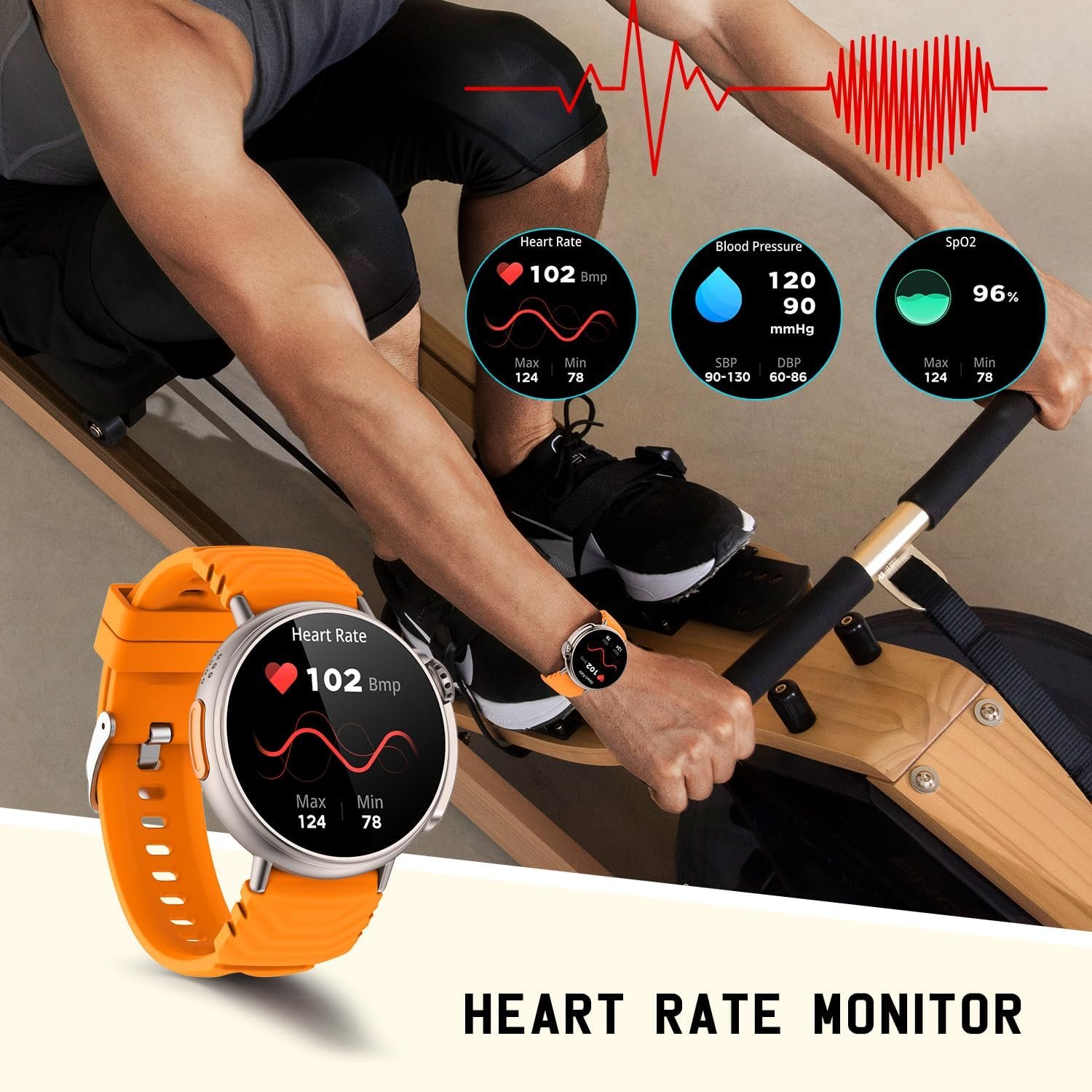 1.52″HD round display & custom watch faces: The 1.52 inch smartwatch with a larger screen and a resolution ratio of 360 * 360 offers excellent image quality. The design with full touchscreen operation offers you a better user experience. There are many watch faces from “Da fit” for choose . You can even customize the watch face and set your favorite photo from the phone album as your wallpaper. with Larger Digital Crown,you can choose the function that you want easier.