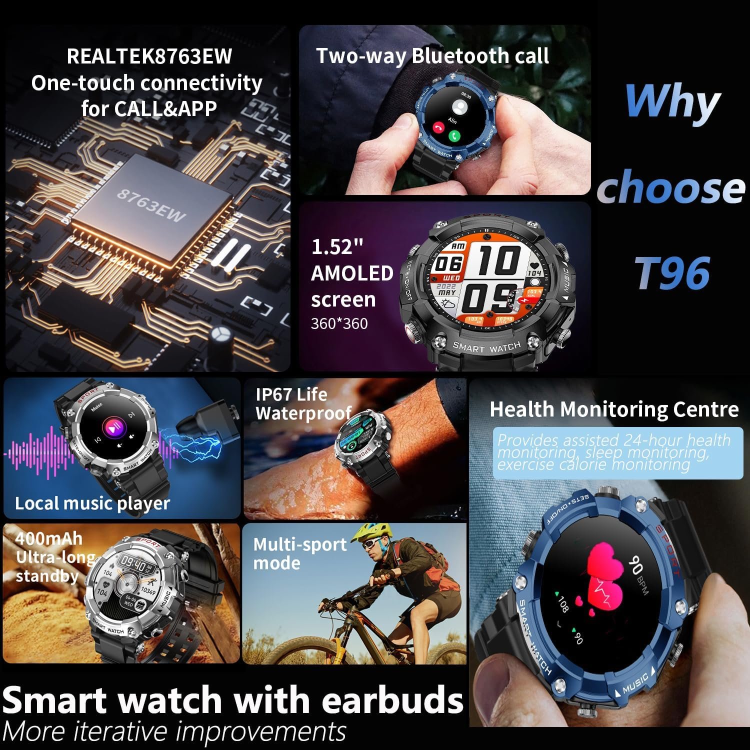 Ultra-long battery life to accompany you in the wilderness,watch 400mAh large-capacity polymer battery, earbuds 35mAh polymer battery,with a new upgraded low-power chip.Performance is greatly enhanced to join you in the wilderness.