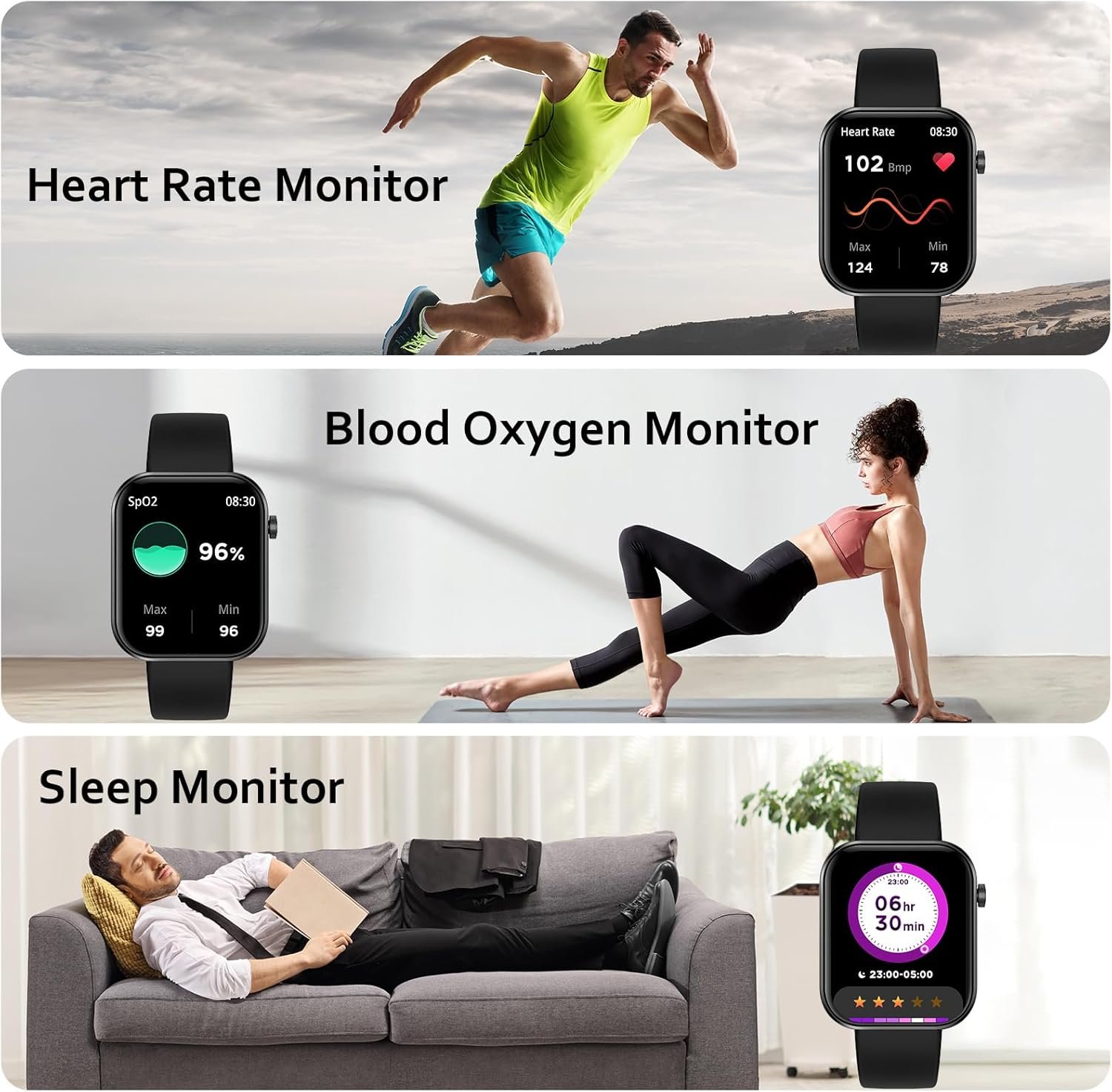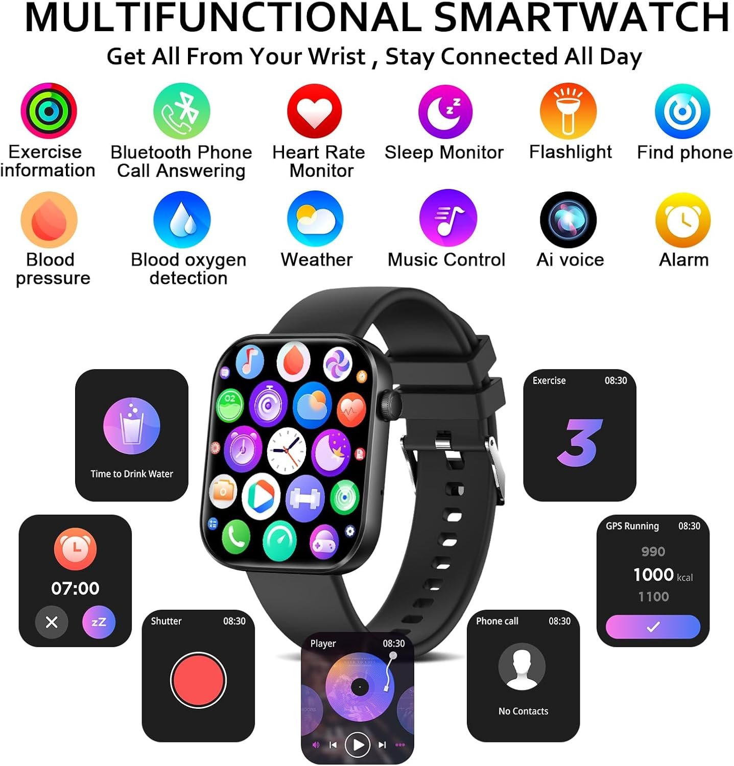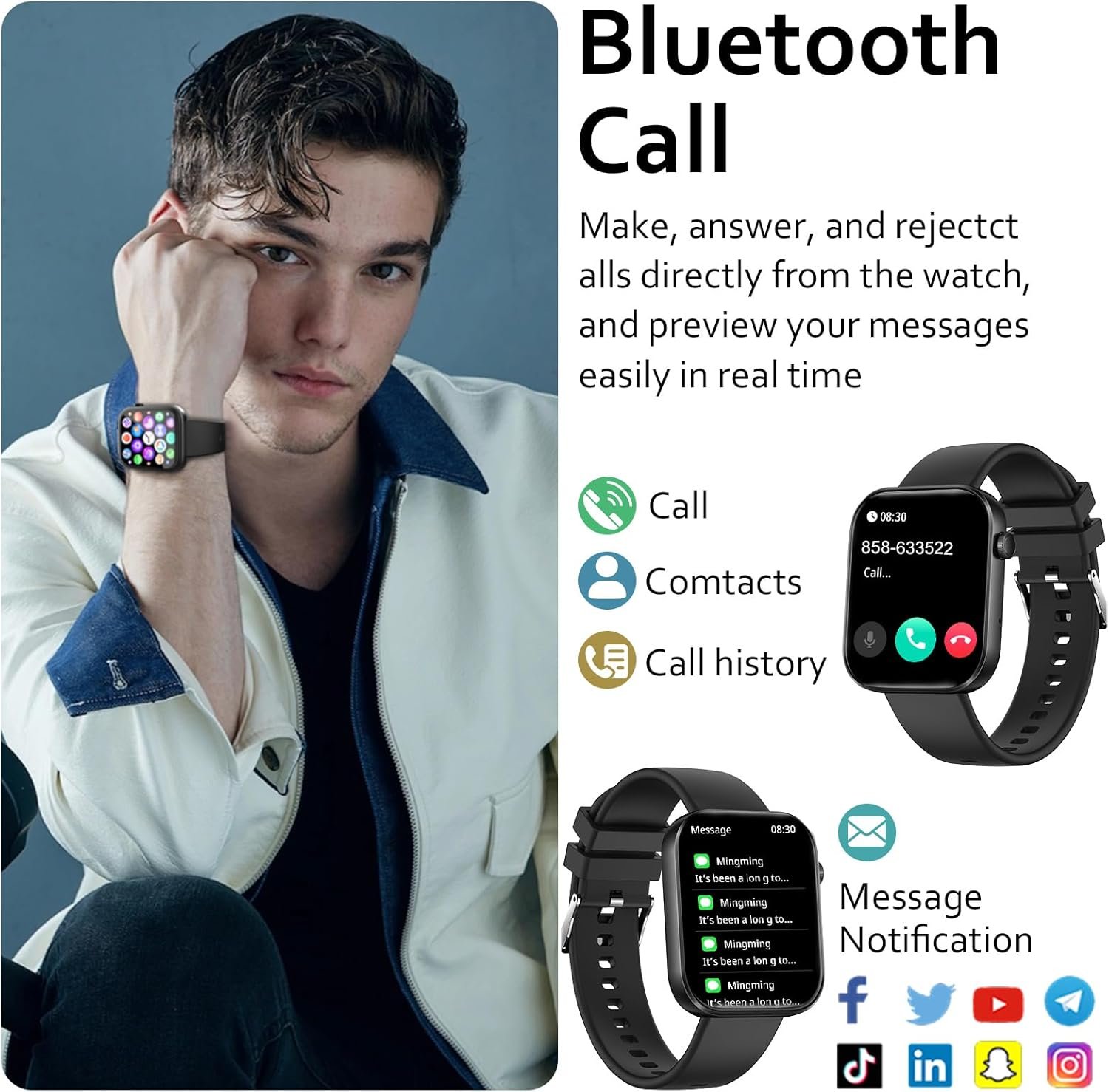 【Bluetooth Call & Message Notification】Our smart watch use the latest Bluetooth 5.0 technology, fast, stable and continuous connection. Effortlessly make and receive calls, store contacts and view call history directly from your wrist, eliminating the need to reach for your phone. Stay connected on the go, whether you’re driving, exercising, or simply multitasking. Additionally, receive smart notifications for SMS, emails, and app alerts, ensuring you never miss an important information