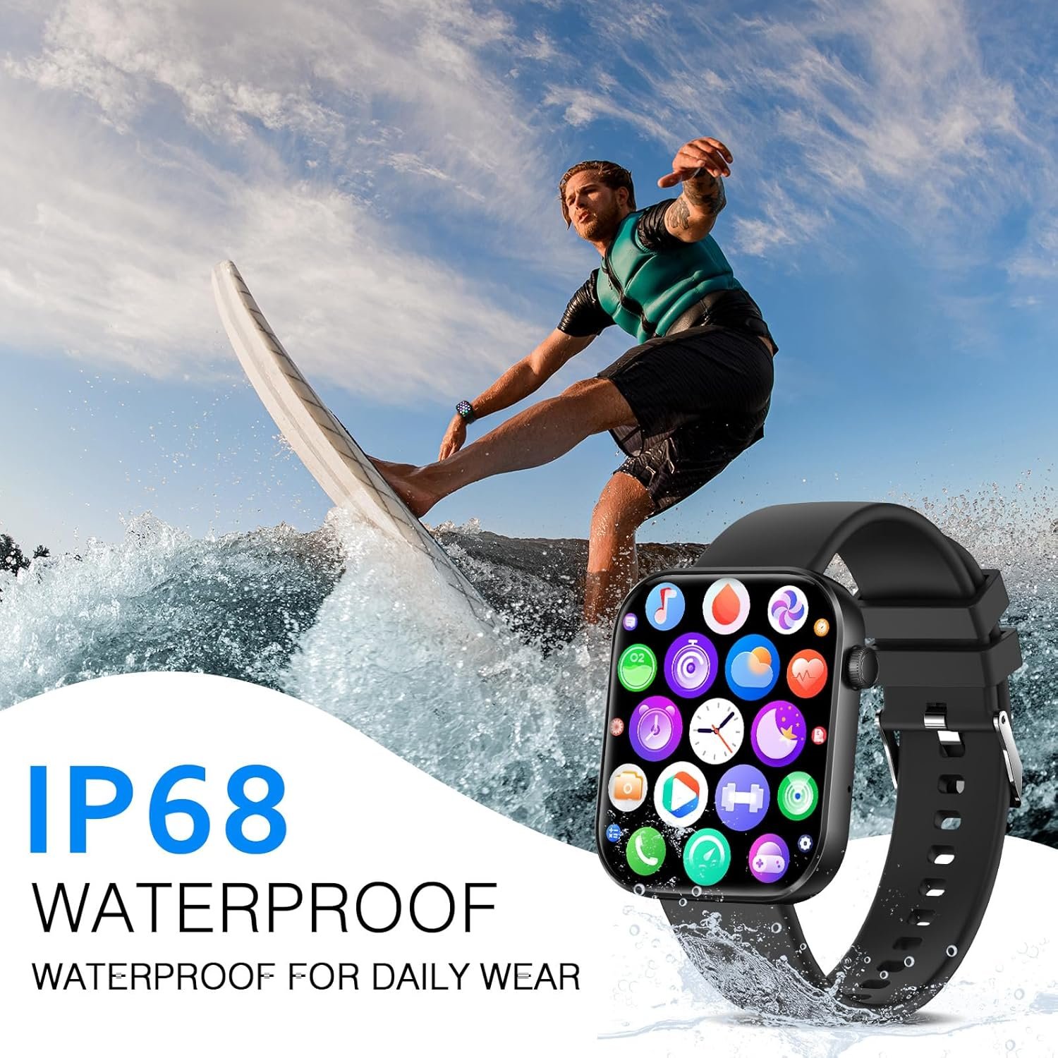 This smartwatch brings functionality at your fingertips for a connected experience. From Bluetooth calling to fitness tracking, everything you need is just a touch away from your smartwatch. 1.96 Inch HD full color large touchscreen 2024 newly smart watch, support IOS 9.0+ and Android 5.0+.
