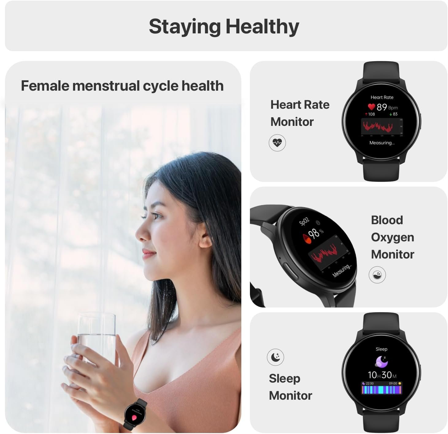 24/7 Health Monitor:This smart activity fitness tracker is equipped with a high-precision sensor for powerful Monitor heart rate, blood oxygen saturation. track your sleep, light sleep , deep sleep , record your sleep data and update every single day, be your smart health aide.